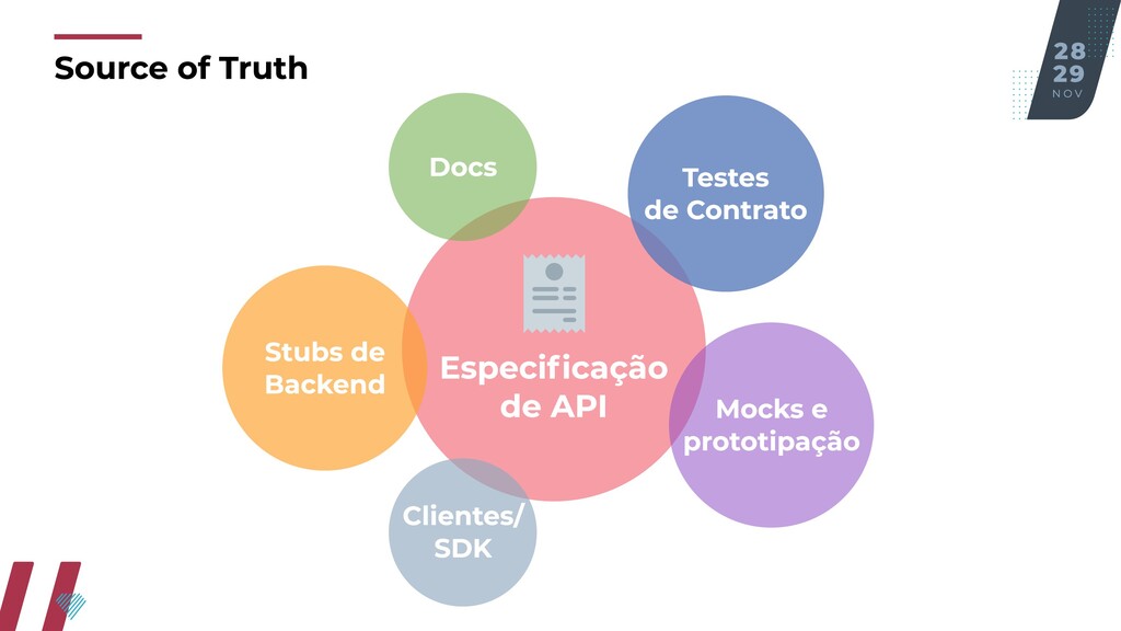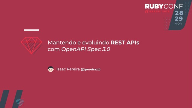 Expor serviços através de REST APIs preservando a sanidade - sua e de seus utilizadores, sejam pessoas ou microserviços, internos ou externos - é uma tarefa dolorosa. Manter documentações válidas, fornecer bibliotecas para consumo da API nas linguagens necessárias e garantir a integridade das interfaces independentemente de mudanças da aplicação são atividades que exigem esforço cotidiano do desenvolvedor. Nessa talk você poderá conhecer o OpenAPI Specification (OAS) e como utilizá-lo para melhorar a Dev Experience do seu time ao projetar, manter e evoluir APIs.