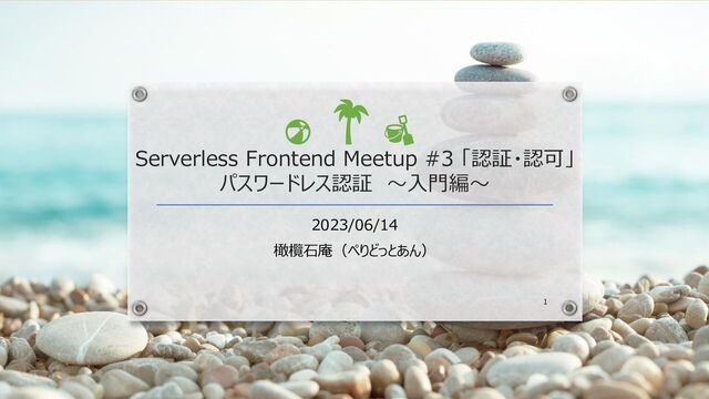 Serverless Frontend Meetup #3 「認証・認可」 パスワードレス認証 ~入門編~ 2023/06/14 橄欖石庵(ぺりどっとあん) 1