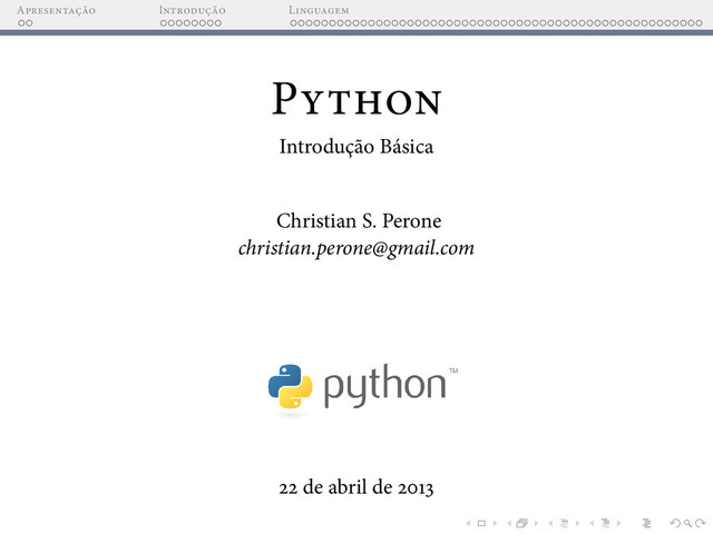linguagem: Versão .x Lançada em de Out , trouxe novidades como list comprehensions. Atualmente o branch da versão .x é o que tem mais módulos externos disponíveis e também é a mais utilizada pela comunidade. Esta introdução ao Python aborda esta versão da linguagem, mais especi camente a versão . .