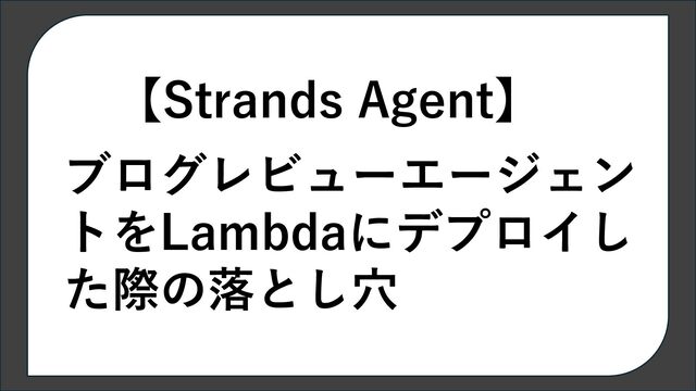 ブログレビューエージェン トをLambdaにデプロイし た際の落とし穴 【Strands Agent】