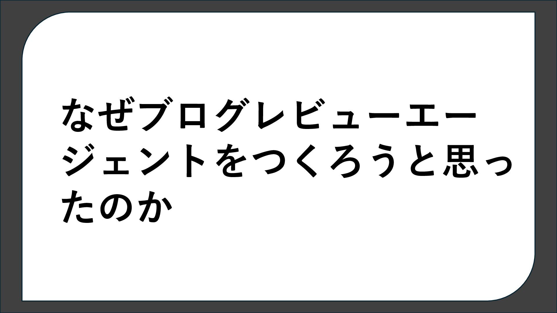 なぜブログレビューエー ジェントをつくろうと思っ たのか