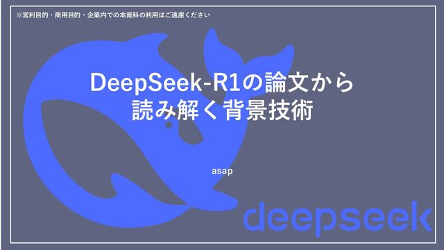 2025年2月25日に登壇した「【DeepSeek解剖!】使い方から技術の核心まで」イベントの講演資料です。 https://ai-fest-tokyo.connpass.com/event/345811/