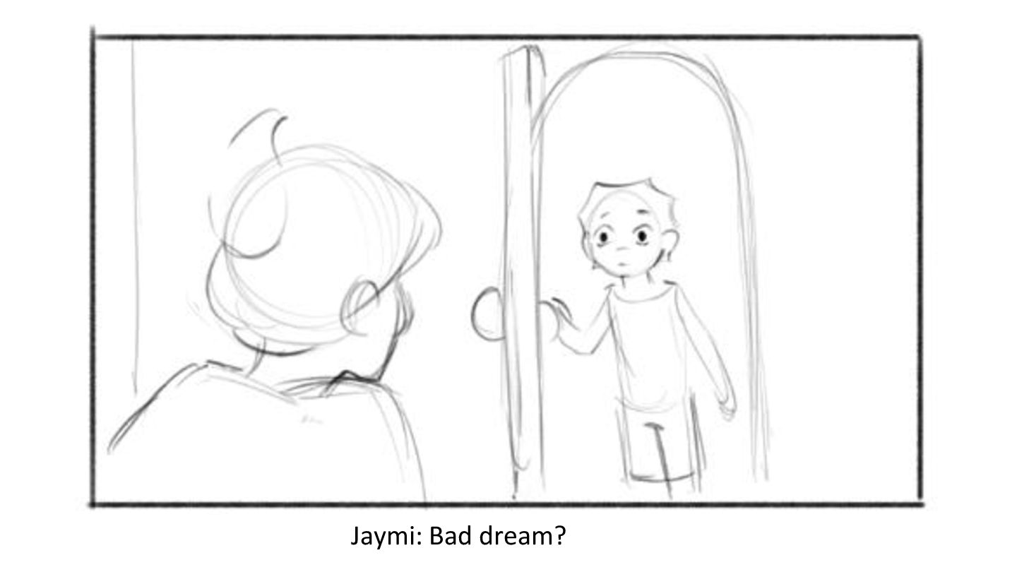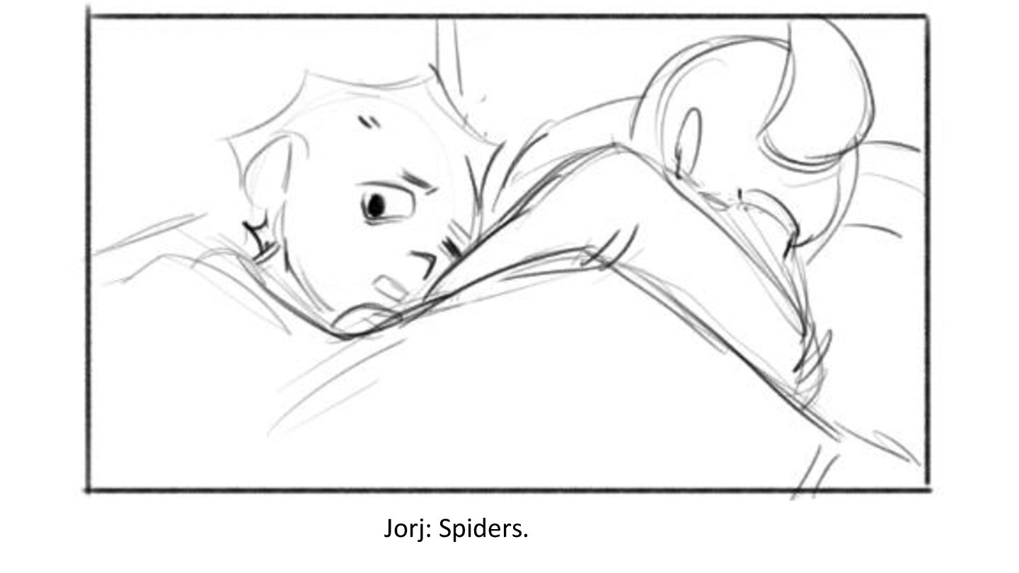 Jorj, waking up from a spider-induced nightmare, relies on his older sister Jaymi to help him fall back asleep.