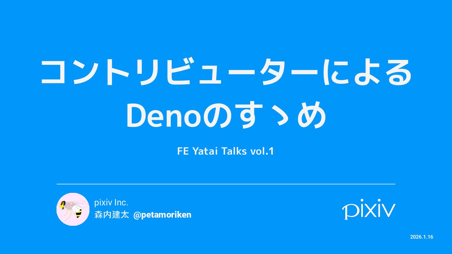 コントリビューターによる Denoのすゝめ FE Yatai Talks vol.1 pixiv Inc. 森内建太 @petamoriken