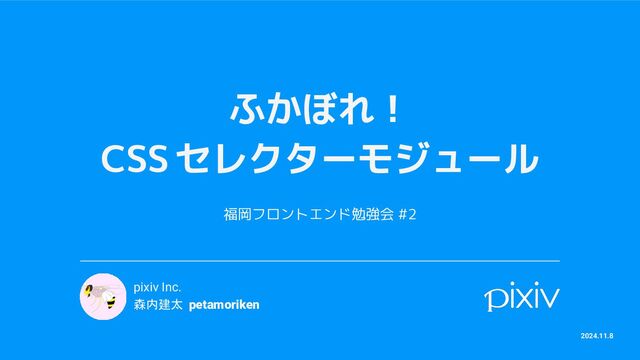 ふかぼれ! CSS セレクターモジュール 福岡フロントエンド勉強会 #2 pixiv Inc. 森内建太 petamoriken 2024.11.8