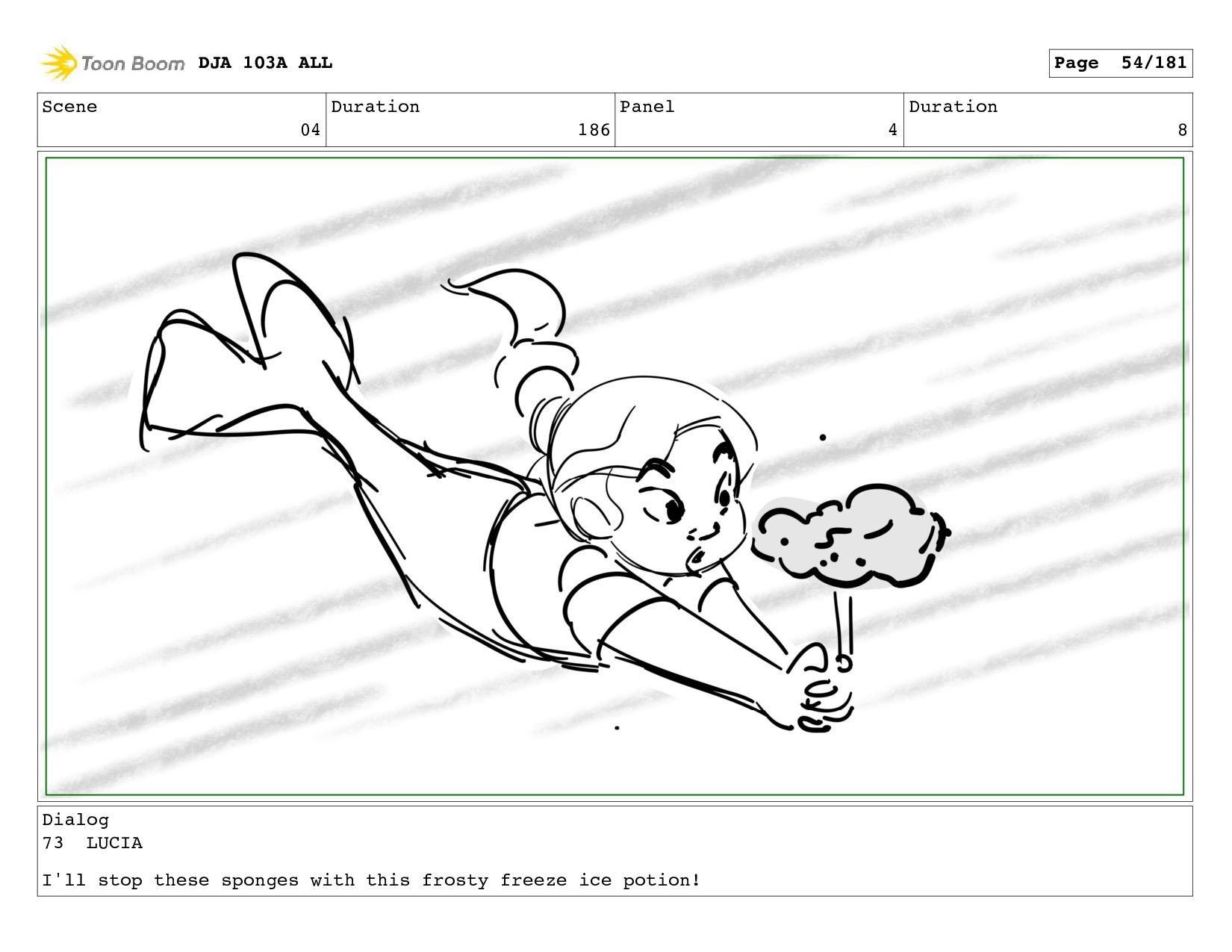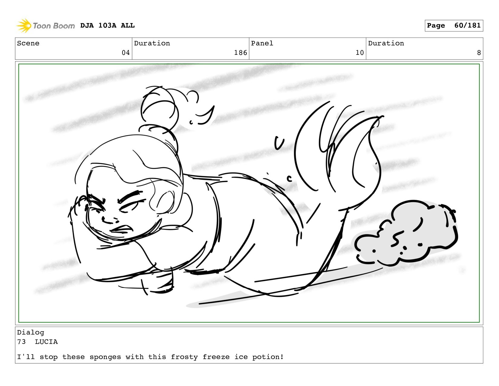 Scene 04 Duration 186 Panel 10 Duration 8 Dialog 73
