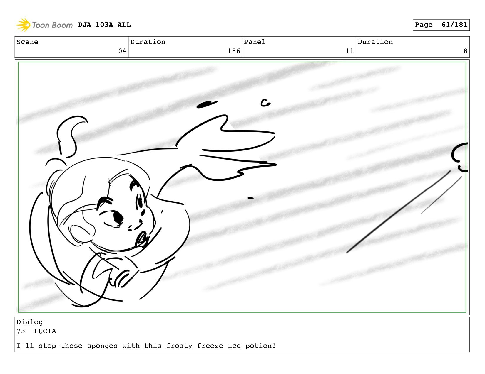 Scene 04 Duration 186 Panel 11 Duration 8 Dialog 73