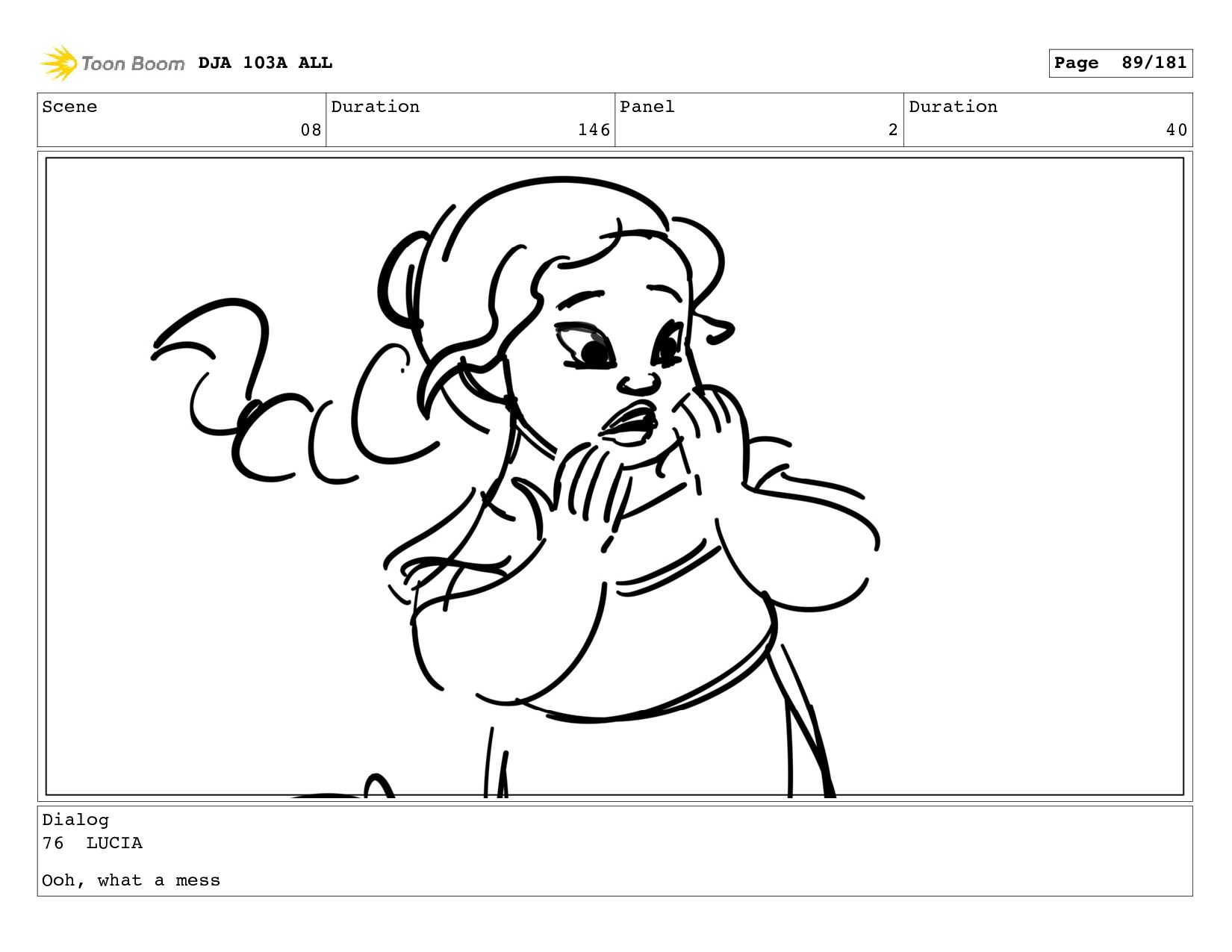 Scene 08 Duration 146 Panel 2 Duration 40 Dialog 76