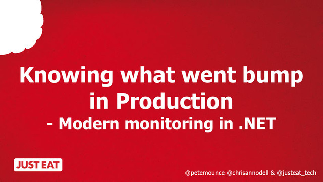 Chris and Pete will introduce the Open Source tools used at JUST EAT (and various others) in their high-volume, cloud-native, buzzword compliant microservice-based .NET platform. This talk will include a whirlwind tour of our tooling: statsd, graphite, grafana, logstash, elasticsearch, kibana as well as some culture changes that using these tools unlocked.