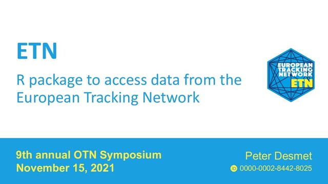 Van Hoey with input from ETN users Desmet P (2021) ETN: R package to access data from the European Tracking Network. Presentation at the 9th annual OTN Symposium. https://bit.ly/etn-otn-2021 ETN R package inbo.github.io/etn ETN application lifewatch.be/etn