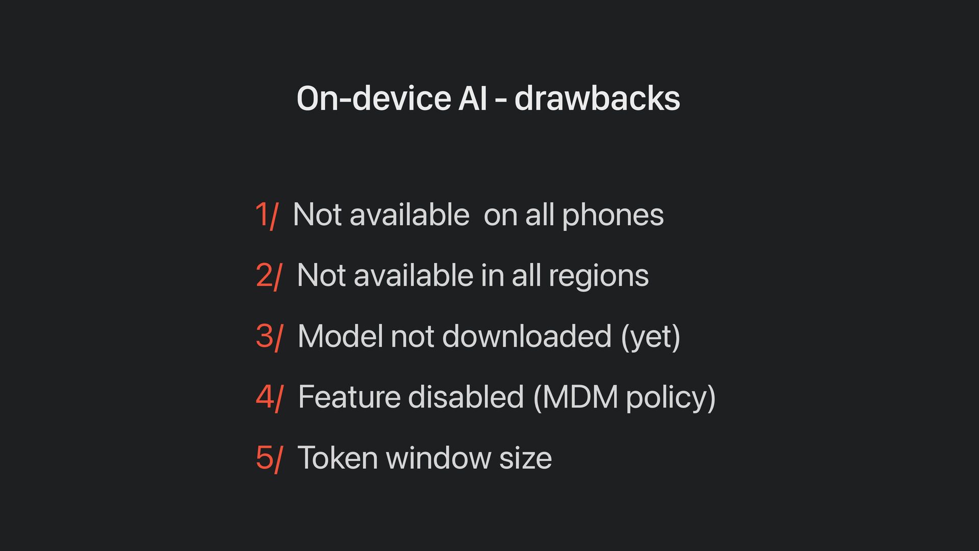 Apple Intelligence brings powerful, private, and fast on-device models directly to our users. But what about users on older hardware? And what happens when a task is too complex or the input is too large for the local model's context window? We can't just show an error.