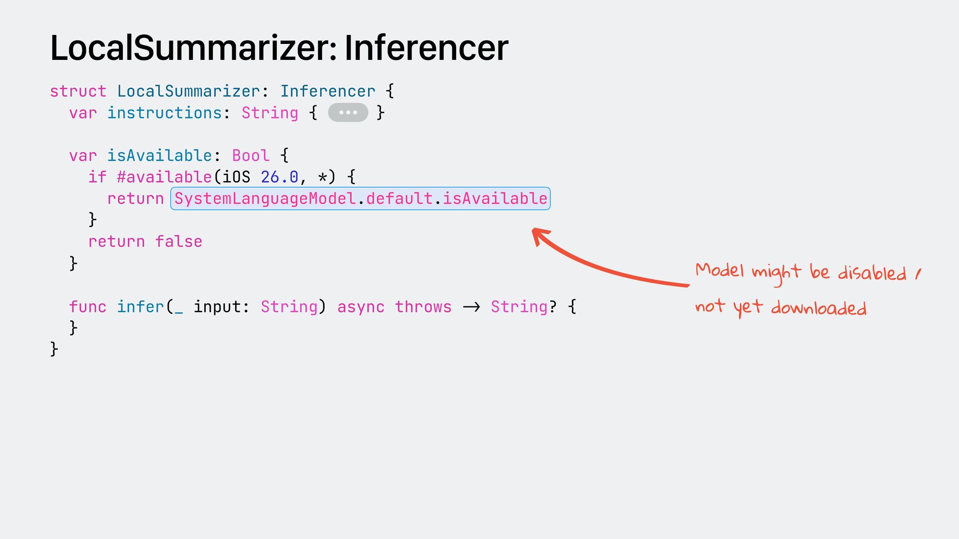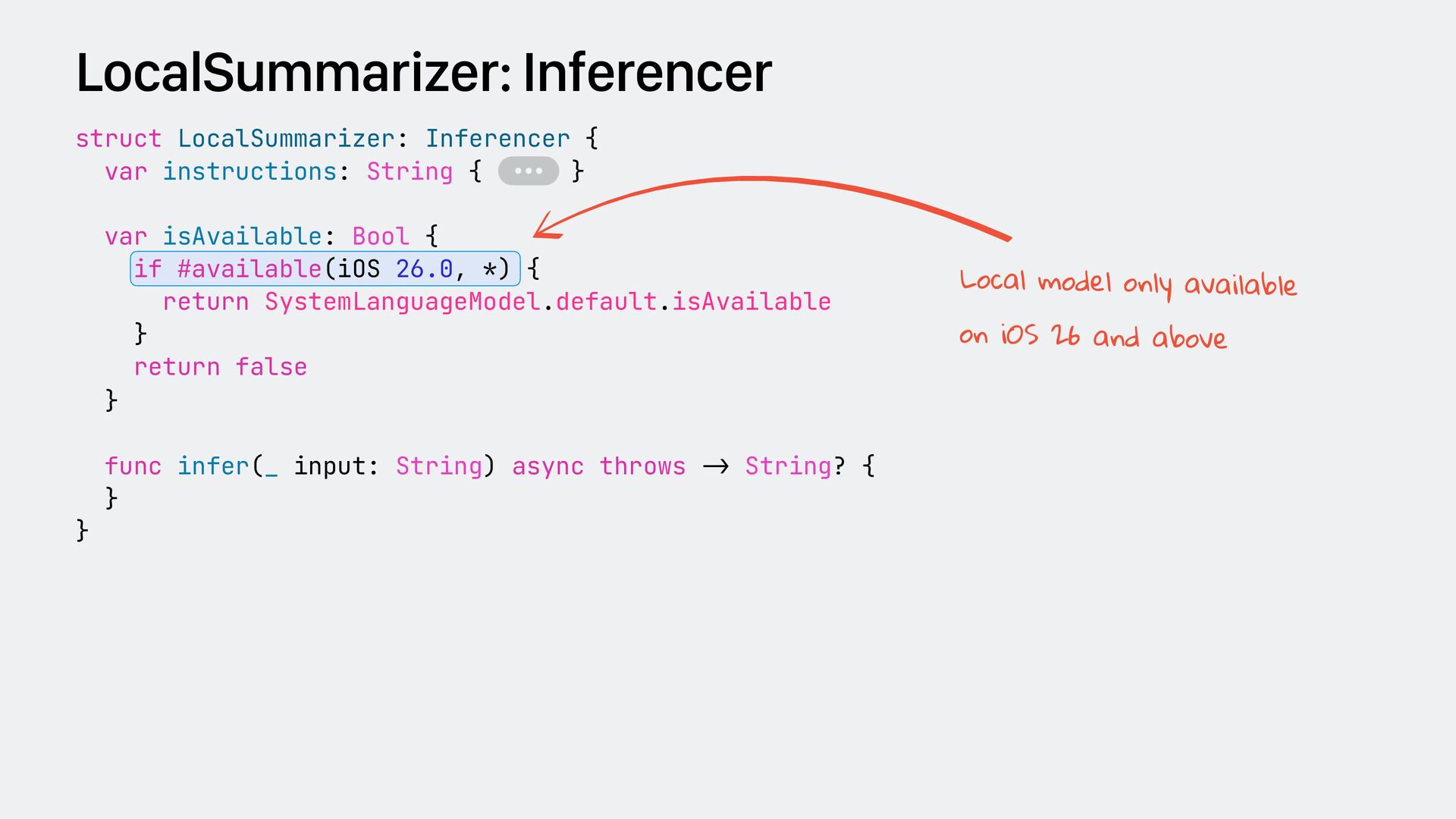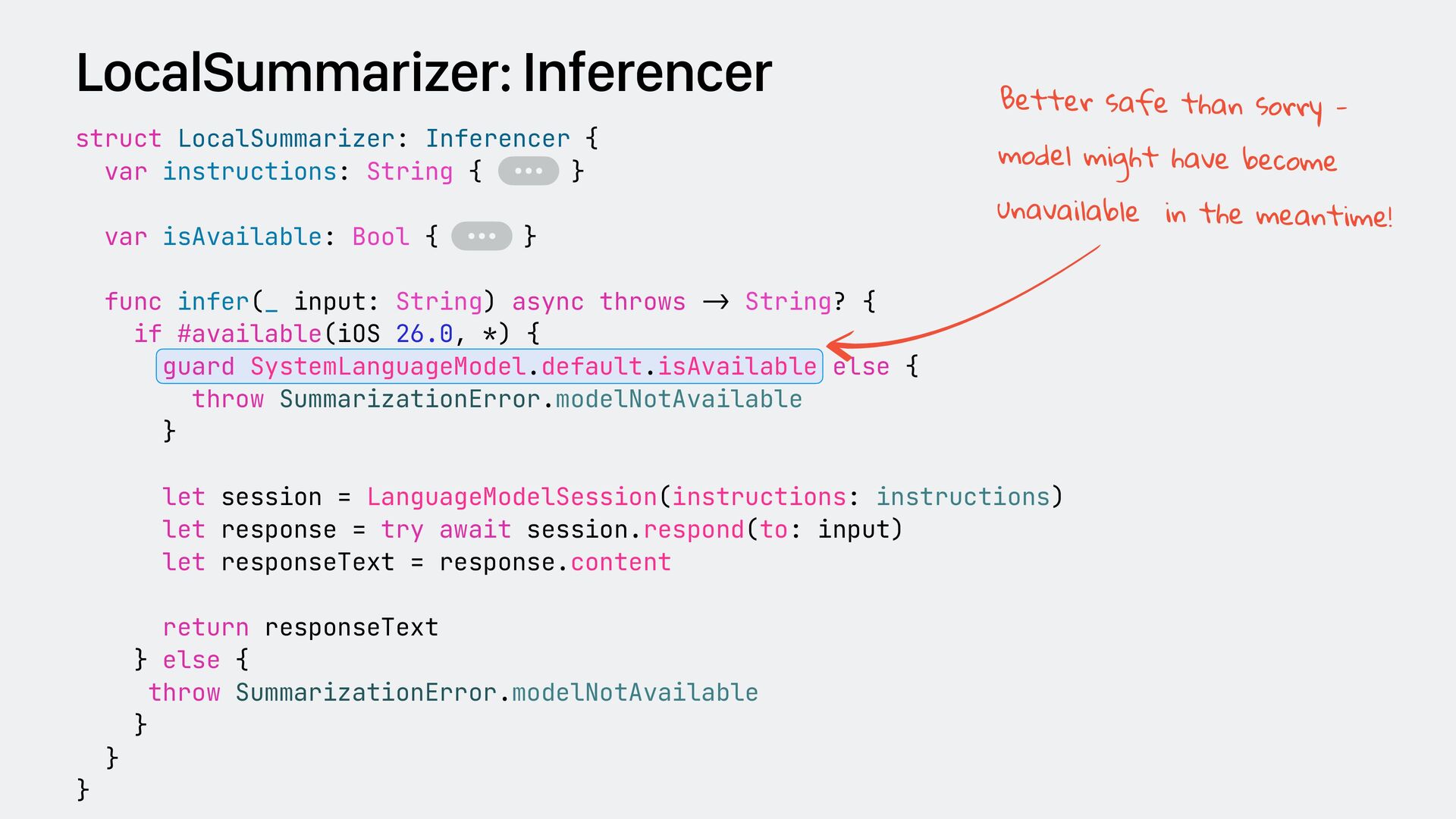 - Strategically decide *when* to fall back—from simple OS availability checks to handling specific errors like `LMError.contextWindowExceeded`.