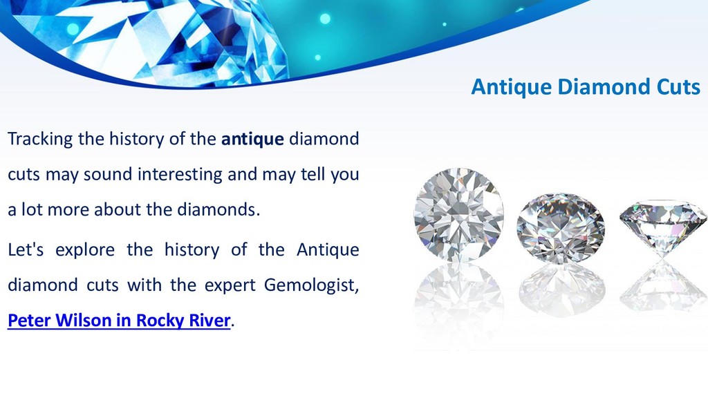 Let's explore the history of the Antique diamond cuts with the expert Gemologist, Peter Wilson in Rocky River and it sounds interesting.