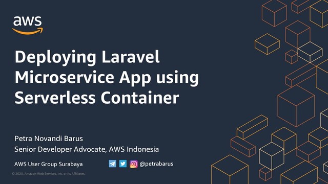to meet you all! My name is Petra Novandi Barus 8 years happy customer of AWS ❤ Startups, DevOps, App Dev, Distributed Systems 2011 CTO & Co-founder, UrbanIndo.com 2016 Largest real-estate portal in Indonesia 2018 Acquired by 99.co (SG) 2018 Country CTO, 99.co Indonesia 2019 Developer Relations, AWS twitter.com/petrabarus t.me/petrabarus Contact