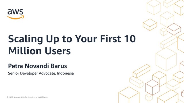 Re-delivered from re:Invent 2019 session Scaling Up to Your First 10 Million Users. This session I shared about how do you start your application using AWS, how to combine AWS services, best practices in choosing the right architecture.
