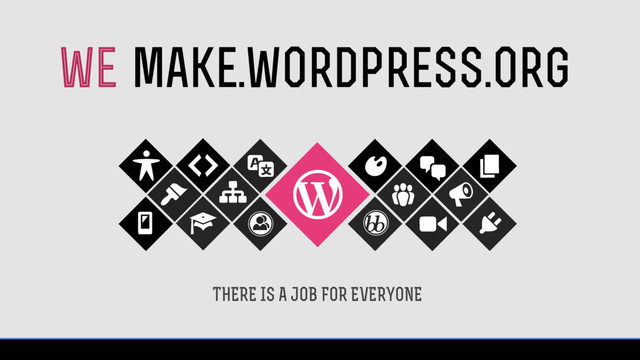 An introduction to the WordPress contributing teams work WordCamp organisers. If you'd like to use and modify this deck, please download the keynote or pptx files from https://www.dropbox.com/sh/wvn5epma8wxe8cx/AABchWUSvShGuuu6lzAijyEna?dl=0