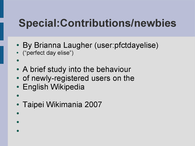Commons/Wikimania wiki) • Do a study like this for users on your wiki, or for users from a different date, and publish on meta: let's learn from each other • Contact • {en, meta, commons}[[:user:pfctdayelise]] • [email protected]