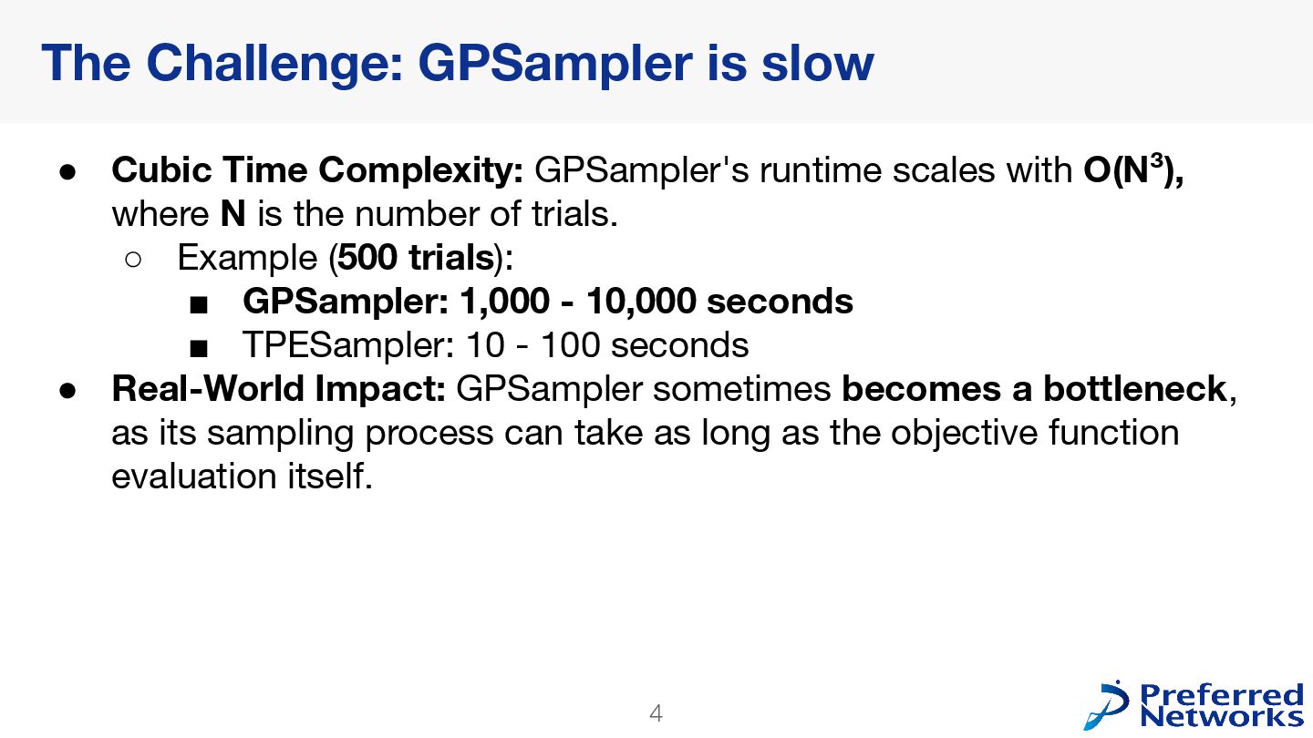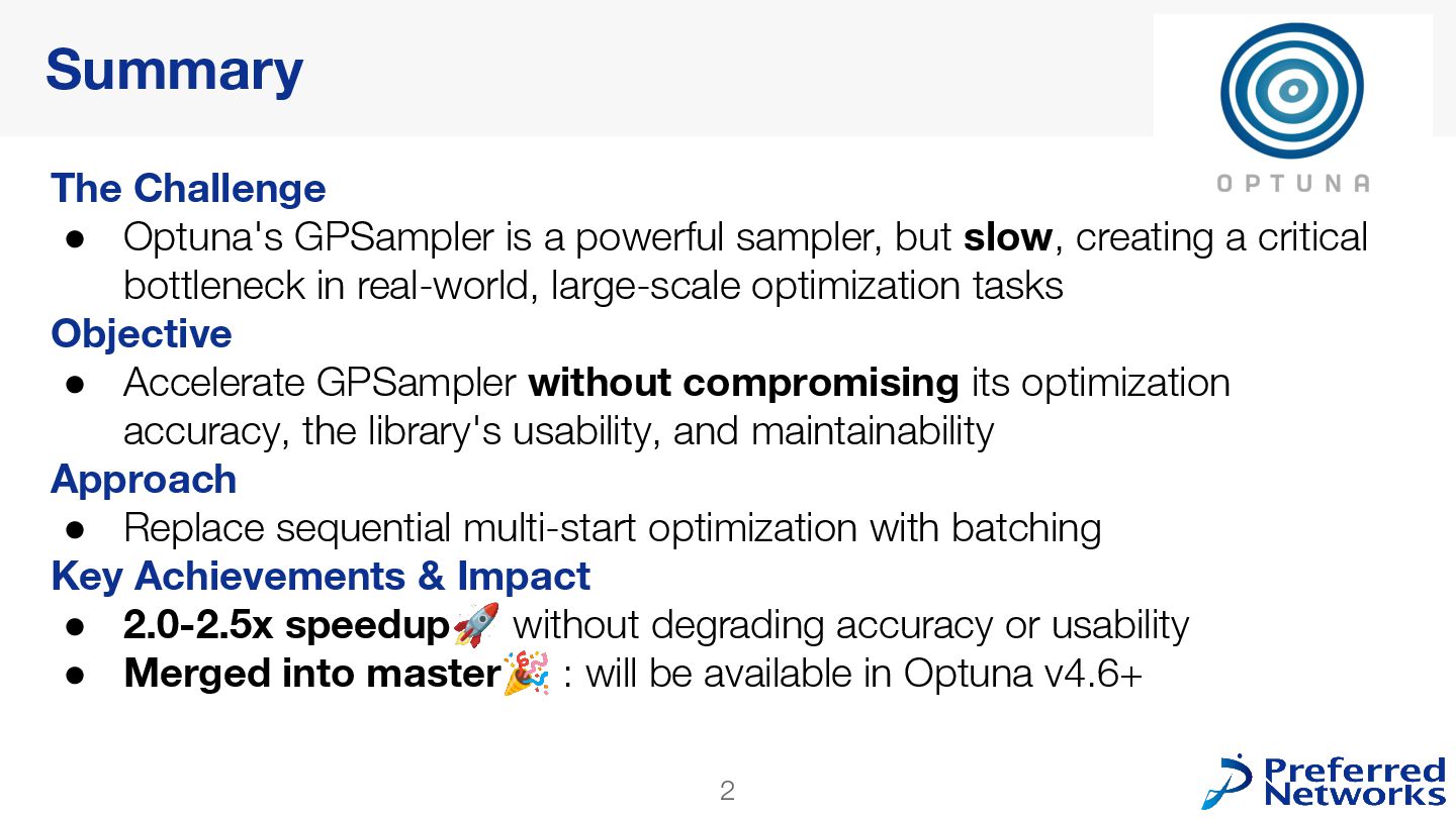 2. Summary The Challenge • Optuna's GPSampler is a powerful sampler,