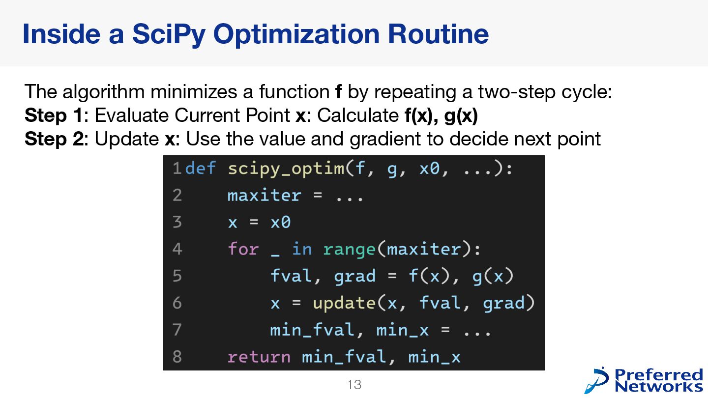 12. Inside a SciPy Optimization Routine The algorithm minimizes a function