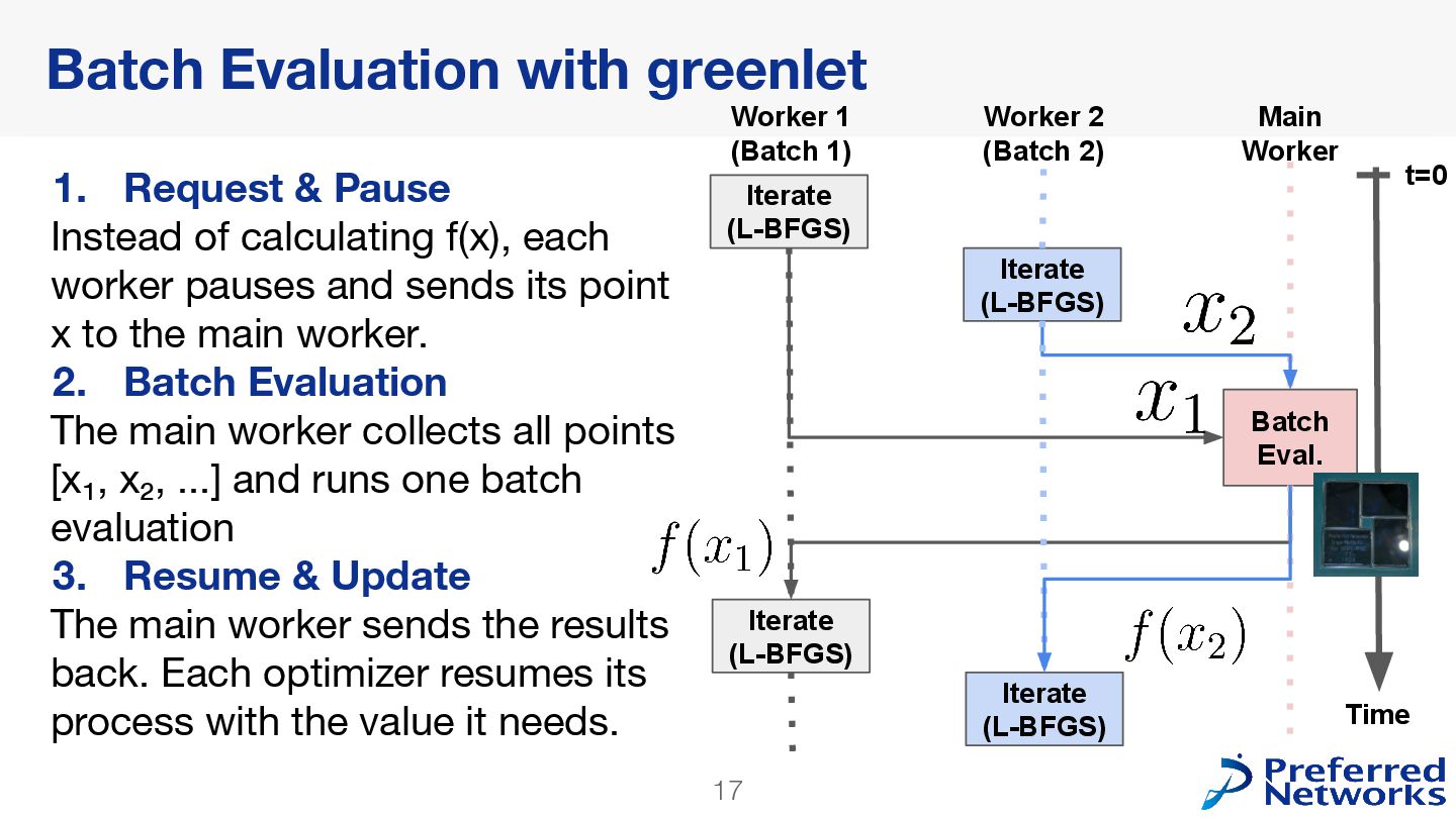 15. Batch Evaluation with greenlet 17 Iterate (L-BFGS) Batch Eval. Iterate
