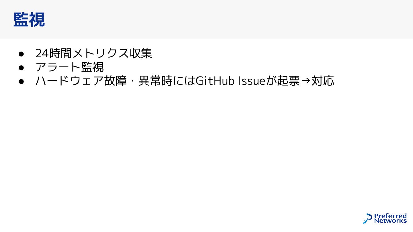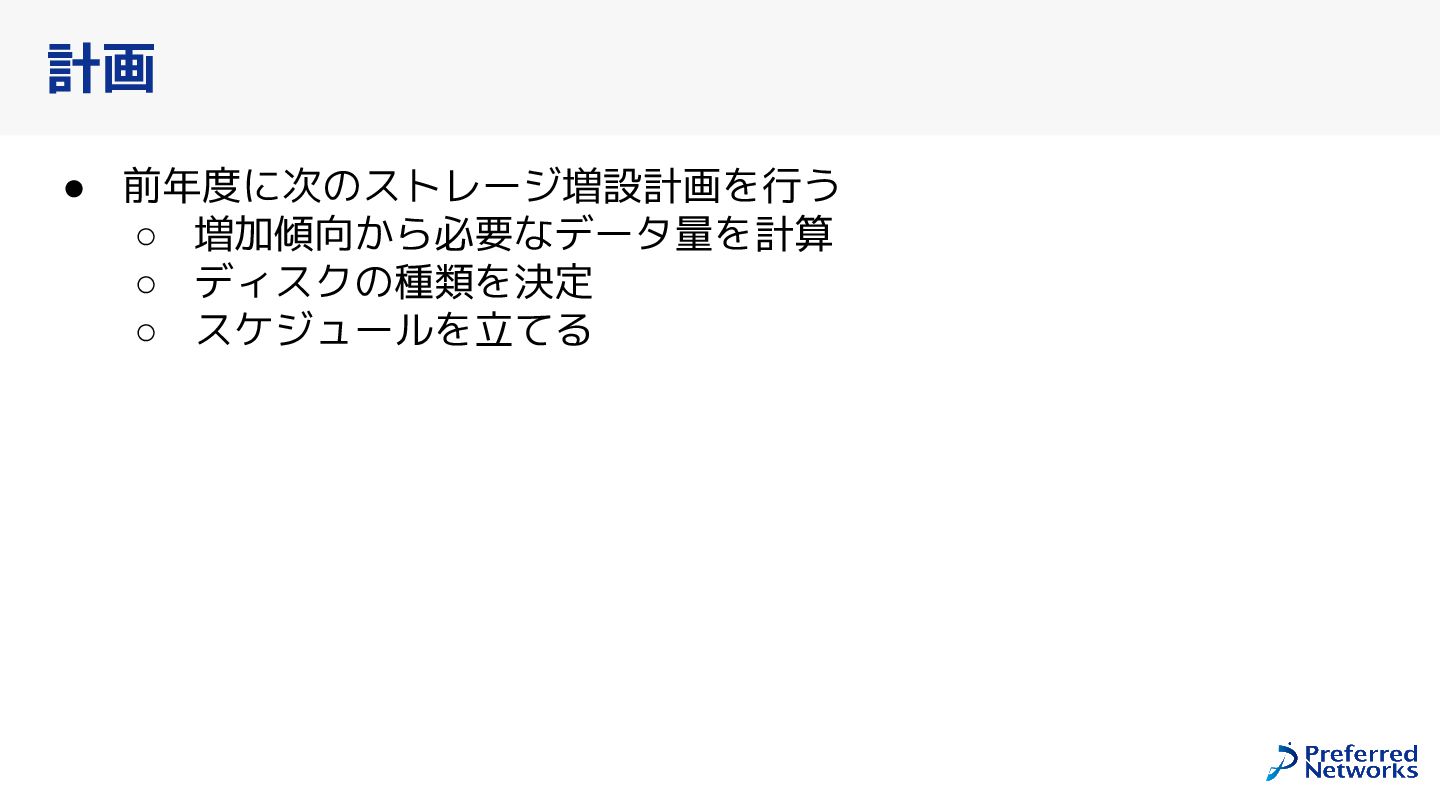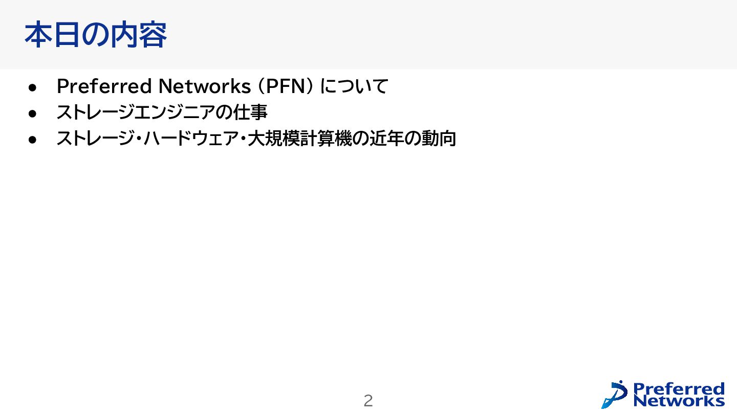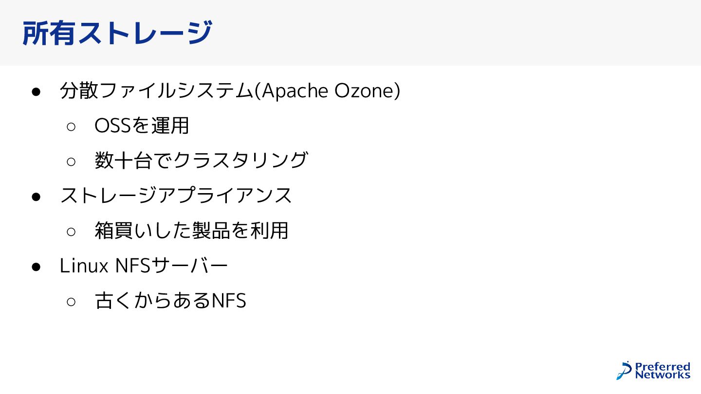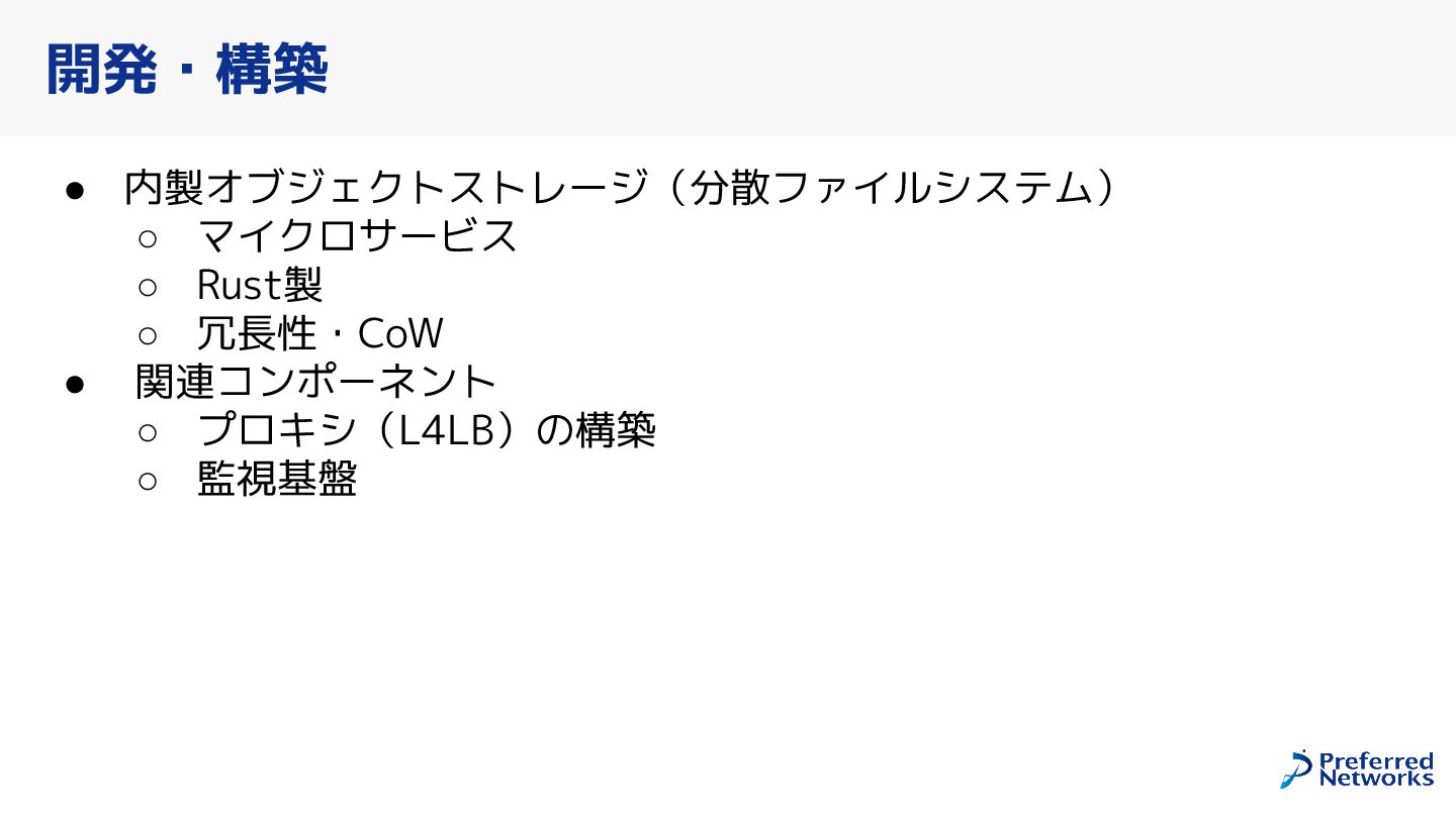 ブートローダー、netboot(PXE)、DHCP サーバーハードウェア ネットワークハードウェ ア 電力・物理配線 最後に • 低レイヤーからインフラまで広い技術 を触れる職種です • クラウドだけではなくオンプレクラス ターを持っているので、特有のベアメタ ル知識・業務が必要になる • (PFNの)"ストレージエンジニア"の解 像度が少しでも上がってくれれば嬉し いです!