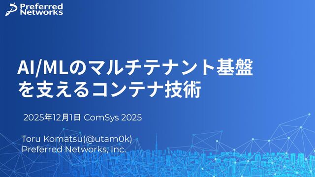 AI/ML 基盤での Kubernetes、コンテナの利用が一般化する一方、GPU や MN-Core などの高価な計算資源を効率化するため、異なるユーザを同じ環境に収容するマルチテナント化の需要が高まっている。しかし、これを既存のコンテナ技術で実現する場合、セキュリティ等の新たな課題ももたらす。本講演では、この事業ニーズを背景にコンテナ技術そのものに焦点を当てる。マルチテナント環境の隔離性を実現するセキュリティ機能を、関連技術と共に解説する。さらに、Preferred Networks で提供している AI/ML ワークロード向けのクラウドサービス Preferred Computing Platform (PFCP) を題材に、2025年11月06日に発表された CVE-2025-31133 に対して最新のコンテナ技術を用いてどのように対応が可能かを説明する。これらの隔離技術が産業現場で果たす実践的な役割を論じる。後に、OSS コミュニティとの関わり方、その価値についても紹介する。