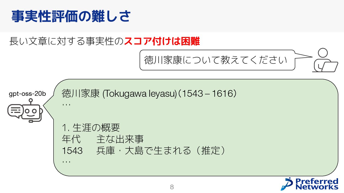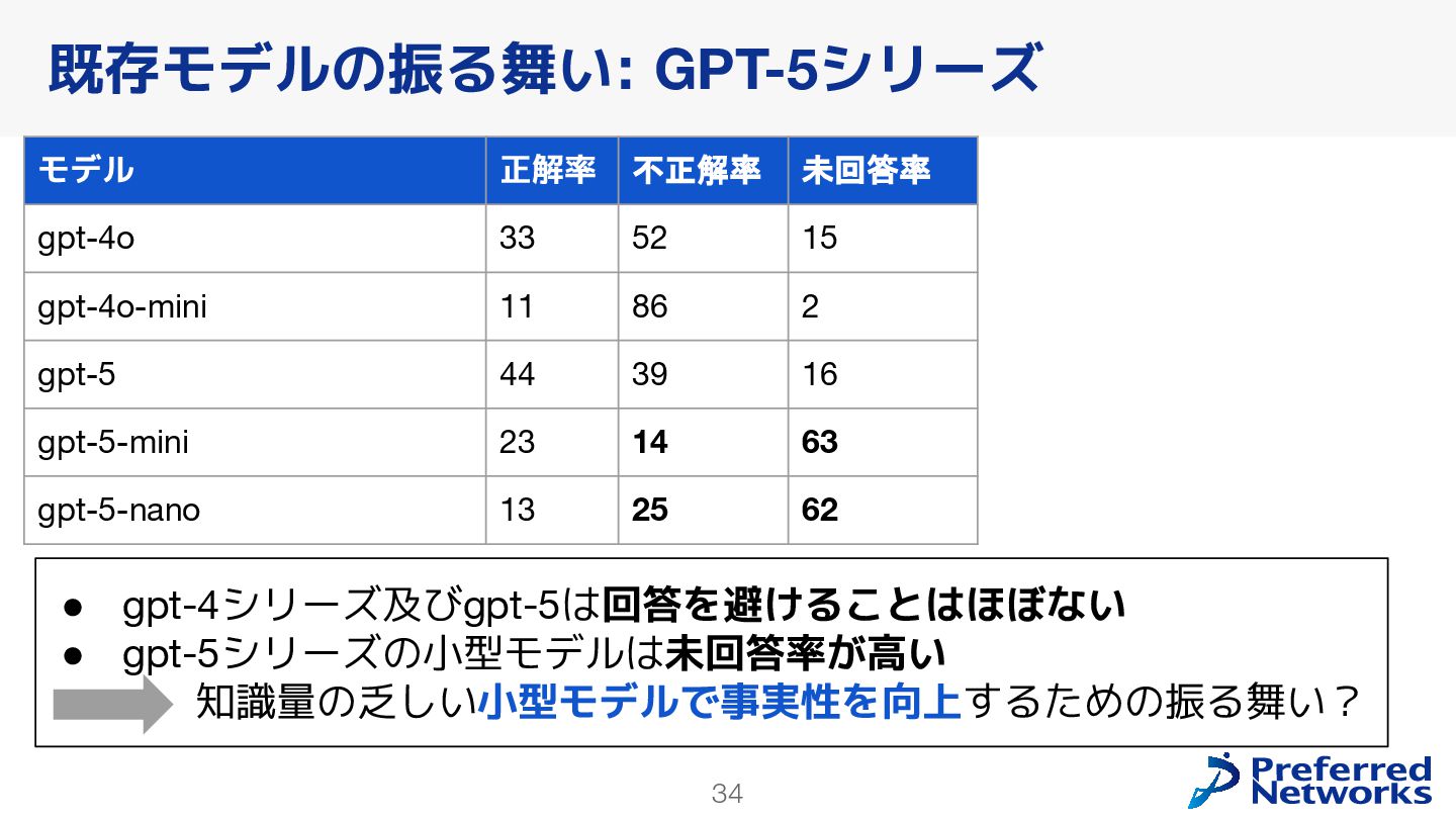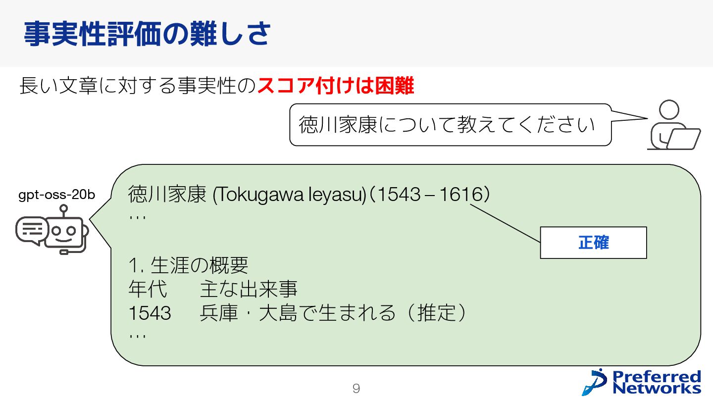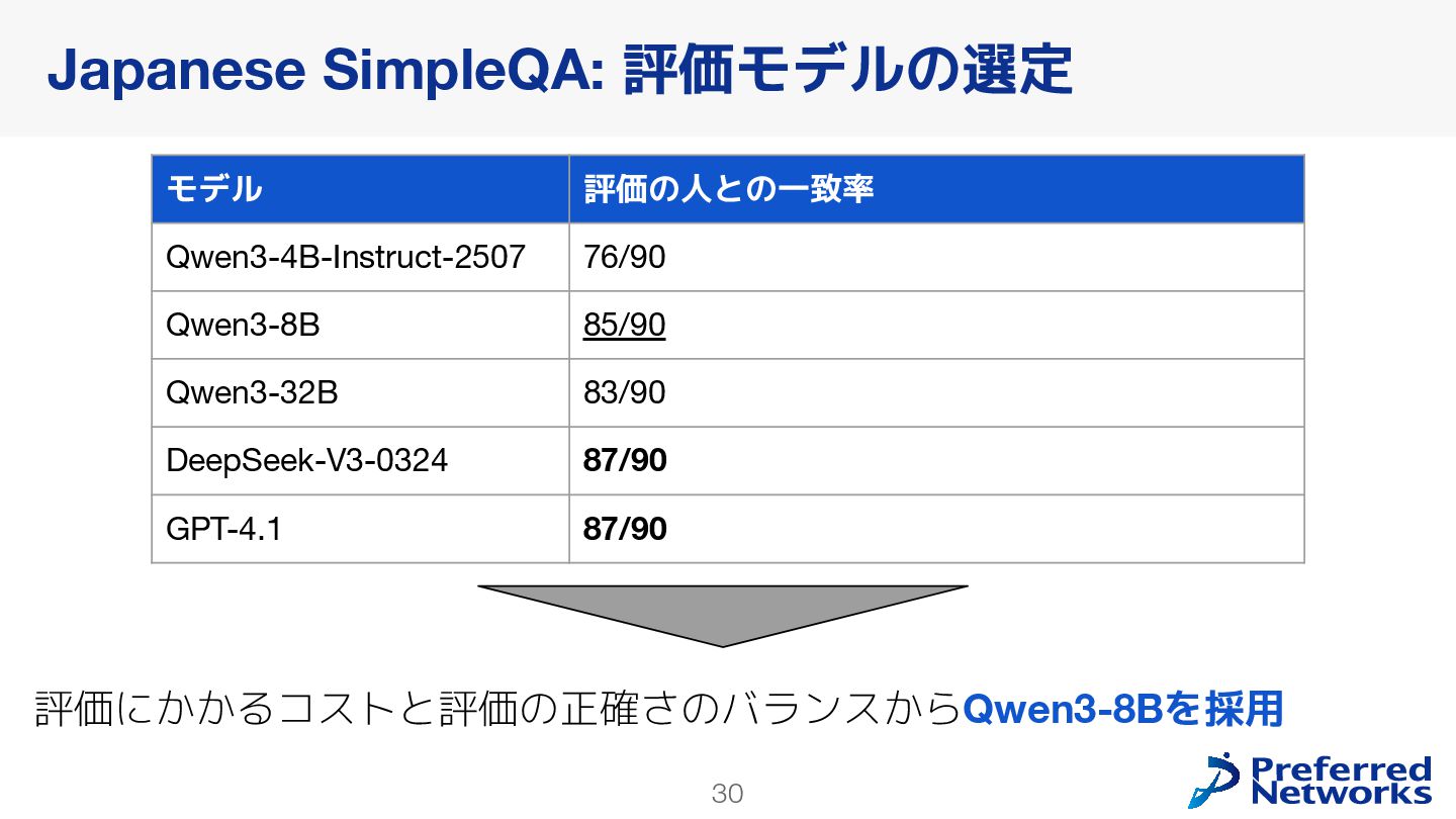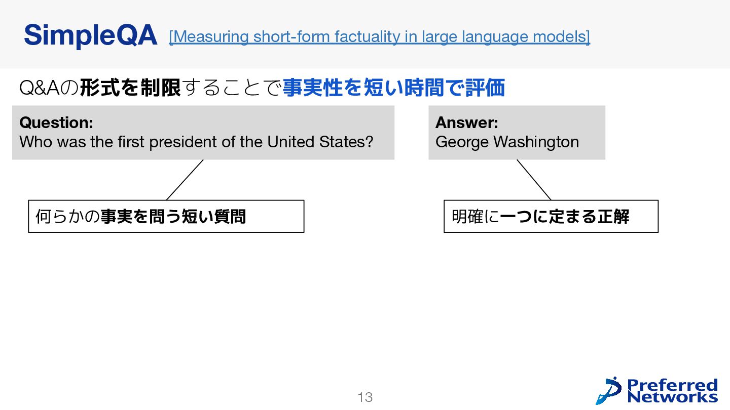 本報告では,大規模言語モデル(LLM)の日本語における事実に基づく回答能力(事実性)を評価するベンチマーク「Japanese SimpleQA」の構築と既存モデルの振る舞いについて述べる.Japanese SimpleQAは,短文で特定の事実について問う3000問の日本語質問応答からなるベンチマークである.SimpleQAと同様に,(1)最新のLLMにとっても高難度であり,(2)時間経過による正答の変化がなく,(3)別解が存在しない,質問応答で構成されている.この設計により,「モデルが自己の知識をどの程度正確に認識しているか」を評価できる.Japanese SimpleQAを用い,既存LLMの事実性や,RAGによる事実性の向上効果を明らかにした.構築したベンチマークは https://github.com/pfnet-research/japanese-simpleqa/ で公開している.