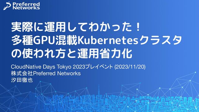 オンプレでKubernetesクラスタを運用している、PFNのClusterServicesチームの取り組みを紹介します。特に、GPU混載対応やCPUリソース利用効率向上への取り組みを深く取り上げます。