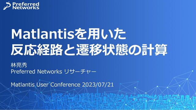 Preferred Computational Chemistry (PFCC)が2023年7月21日に主催した第3回Matlantis User ConferenceでPreferred Networks (PFN)リサーチャーの林亮秀が用いた講演資料です。