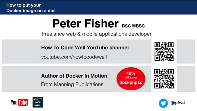 In this talk I will demonstrate 6 ways to reduce the size of your Docker image. Each example has been tagged as a working example that can be found on the Docker hub and GitHub.