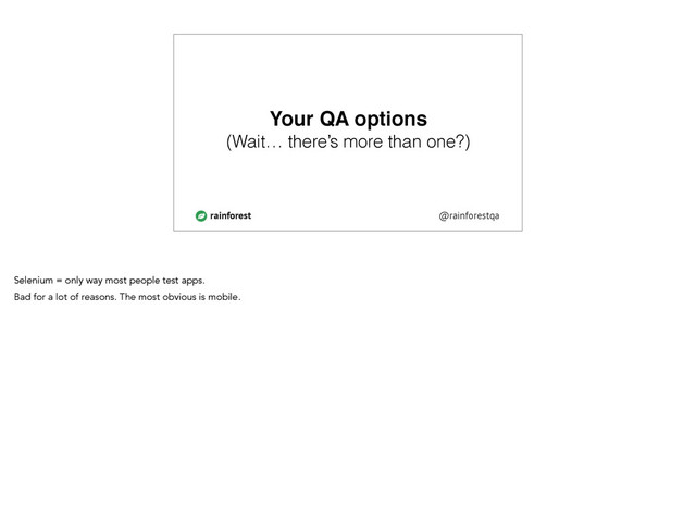 A lot of companies use one framework and only one for their testing. Why do that, when headless browsers are such a beautiful compliment to the traditional approach?