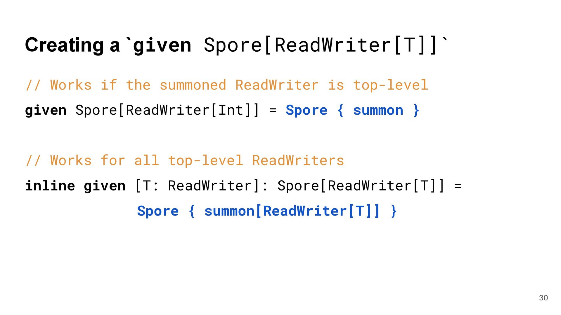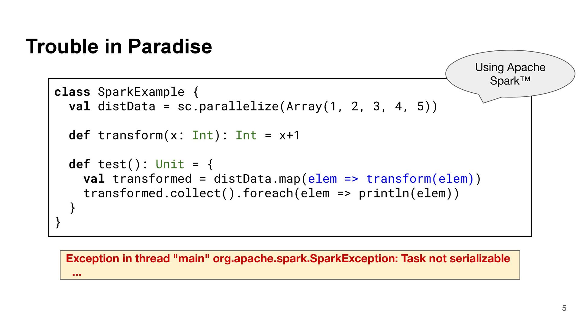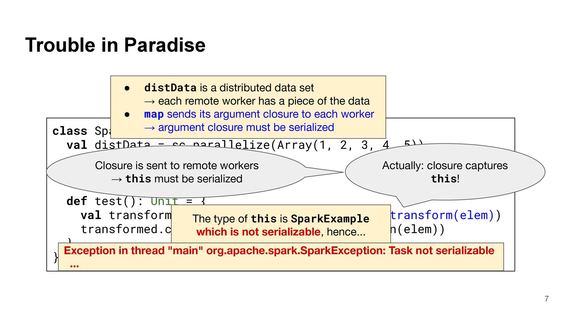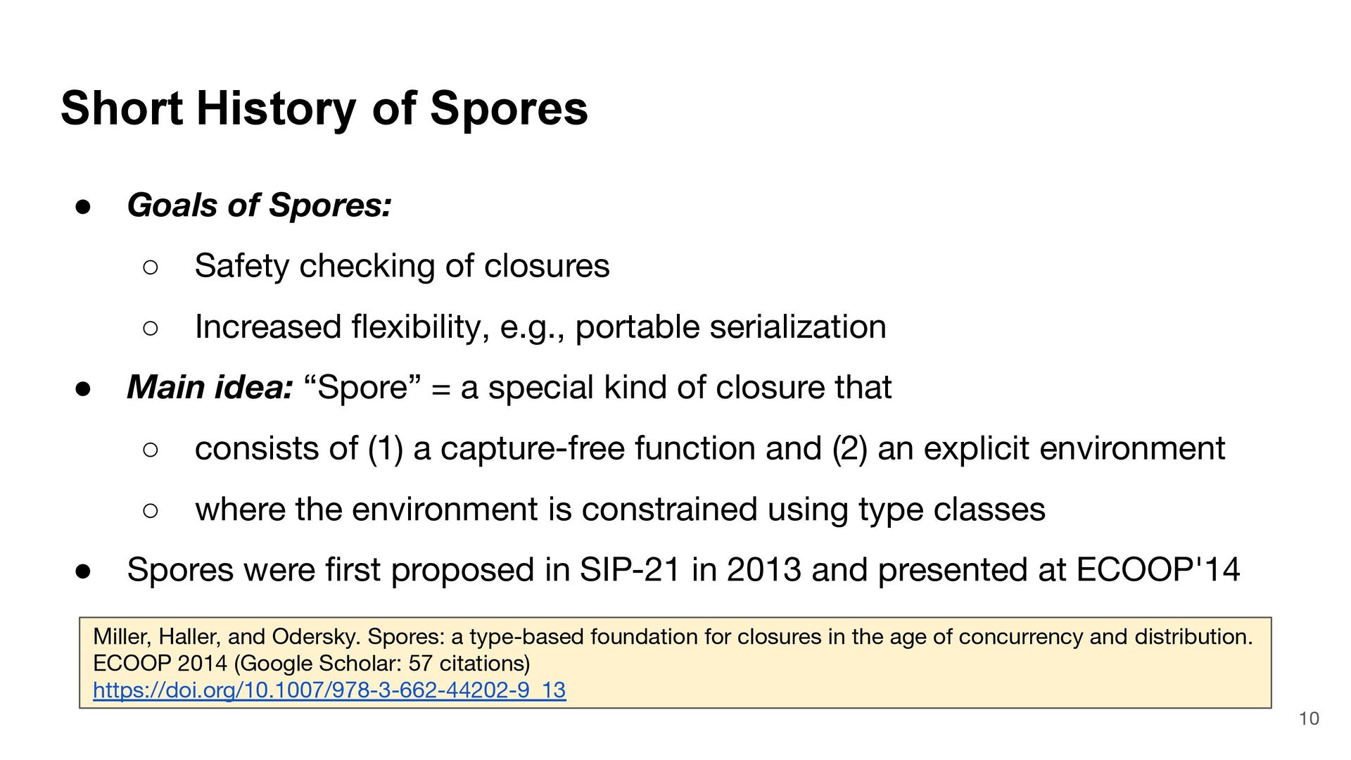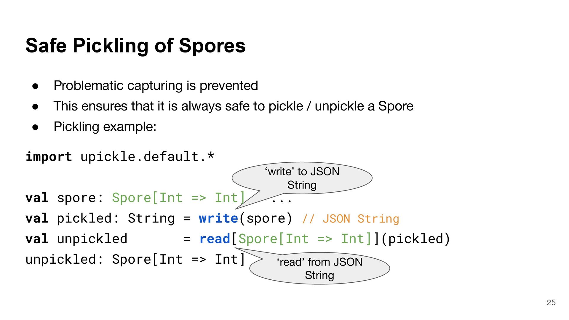 = { (num: Int) => num < Global.fld } assert(numbers.filter(fun), List(3, 2, 4)) What is Captured and What isn't? 4 object Global { val fld = 5 } val fun = { (num: Int) => num < Global.fld } assert(numbers.filter(fun), List(3, 2, 4)) val numbers = List(6, 3, 9, 2, 4) def mkFilter(threshold: Int) = (num: Int) => num < threshold val fun = mkFilter(5) assert(numbers.filter(fun), List(3, 2, 4)) class Filter(threshold: Int) extends Int => Bool: def apply(num: Int) = num < threshold val fun = Filter(5) assert(numbers.filter(fun), List(3, 2, 4)) Top-level object captured "captured" Not captured
