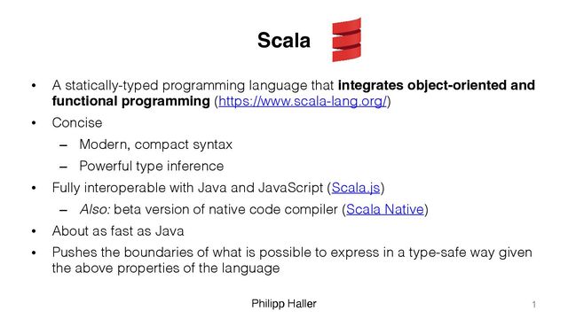 by Prof. Martin Odersky at EPFL, Switzerland • The Scala language is a cooperative project of four groups (see Scala Governance): – the Scala Center at EPFL – the Scala 3 team in the research group of Prof. Martin Odersky (also at EPFL) – the Scala team at Akka – the Scala team at VirtusLab • Many individuals, companies, and organizations contribute as part of the broader Scala community – Scala community with forums, conferences, meetups, news, learning resources etc. • Prominent Scala users: – Airbnb, Akka, Apple, Databricks, Goldman Sachs, JPMorgan, Klarna, Lego, Microsoft, Morgan Stanley, Netflix, PayPal, Procter & Gamble, Shopify, Spotify, Starbucks, Tesla, Verizon, VirtusLab, Walmart, Walt Disney, Wolt, Zalando 5