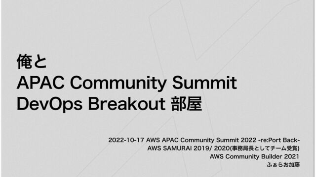 俺とAPAC Community Summit DevOps Breakout 部屋