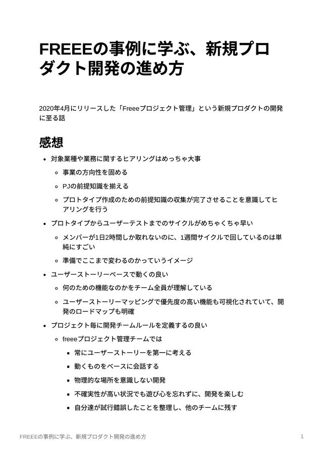 チームでの意思決定の⽅針を決めることが⼤事 ユーザーストーリーがチームに浸透しないと意味ないため物理的な合宿で 認識を揃えた これは本当に重要 動くものをベースに会話する 不確実性の⾼い状態から、試⾏錯誤して本質的な価値を⾒つける 初期はあえてHeroku を採⽤し、開発した機能を動く状態にして議論 「包括的なドキュメントよりも動くソフトウェアを」 物理的な場所を意識しない開発 複数拠点のため物理的に離れているチーム MTG やスクラムイベントは常にビデを会議のURL を共有、誰でも参加 OK アジェンダは事前にGoogle Docs に作成し、MTG 中にリアルタイムに書 き込んで作成 抽象的なディスカッションは予めmiro などを⽤意 動くものをベースに会話するために、常に最新の状態を確認できる環境 を⽤意 不確実性が⾼い状況でも遊び⼼を忘れずに、開発を楽しむ 継続的に⾼いパフォーマンスを発揮するためにはチーム全体が楽しむこと が⼤事 スプリントが終わったらクラッカーで祝福 関係者を巻き込み、スプリントイベント中にリアルタイムデプロイ フィーチャートグルを⽤意しておき、その場でフラグを切り替える その場で新機能が使える体験は⾮常に好評 ⾃分達が試⾏錯誤したことを整理し、他のチームに残す