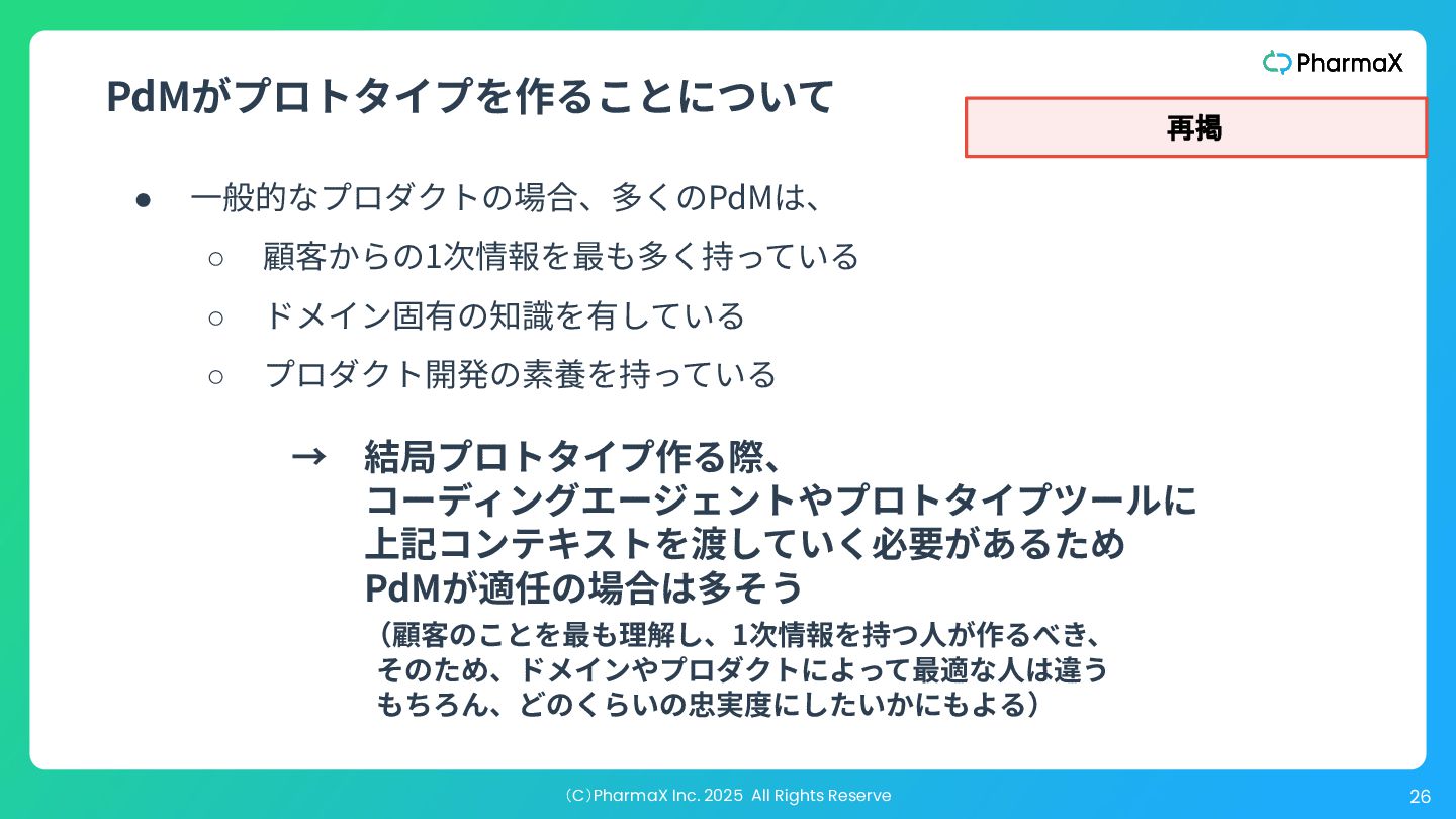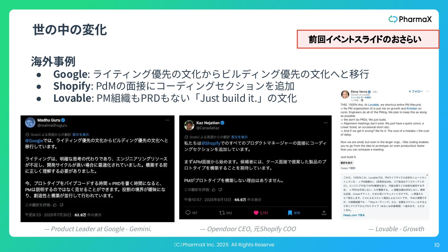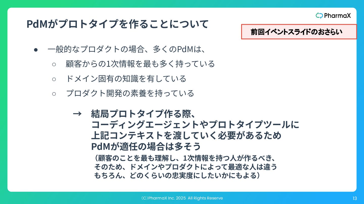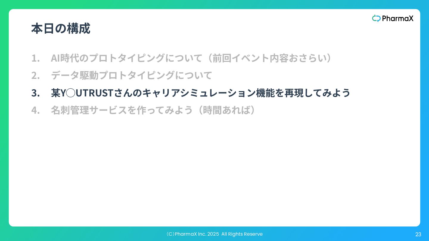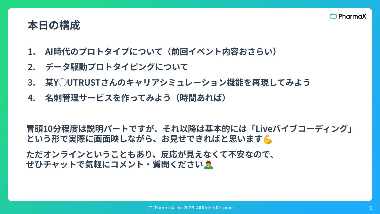AI Studio(基本無料!助かる!) a. とにかく簡単にLLM組み込んだ機能作りたい b. Cloud Runへのデプロイが容易 2. Figma Make(利⽤可能なプランでは現時点では無料!) a. Figmaデザインファイル読み込み可 →既存プロダクトの簡易的なプロトタイプ作成が容易 b. Supabase連携 3. Cursor(+ Codex / Claude code) a. Figmaデザインファイル読み込み可(Figma MCP) b. Google以外のLLMモデル使⽤可、Composerが速くて素敵 c. バックエンド実装まで⾃分でやる場合 モデル選択・シ ステム構成の柔 軟性低い 柔軟性高い
