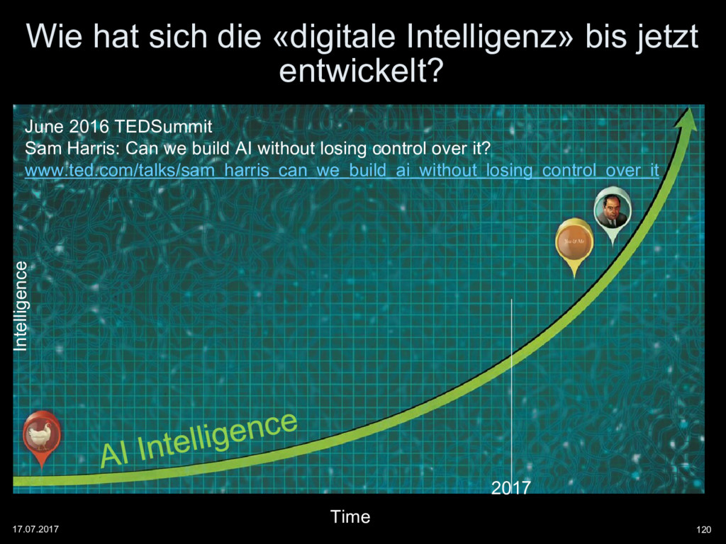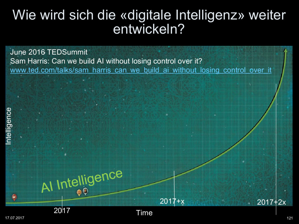 2016 TEDSummit Sam Harris: Can we build AI without losing control over it? www.ted.com/talks/sam_harris_can_we_build_ai_without_losing_control_over_it Time Intelligence 2017 17.07.2017 120