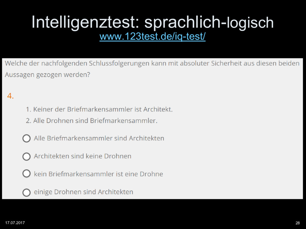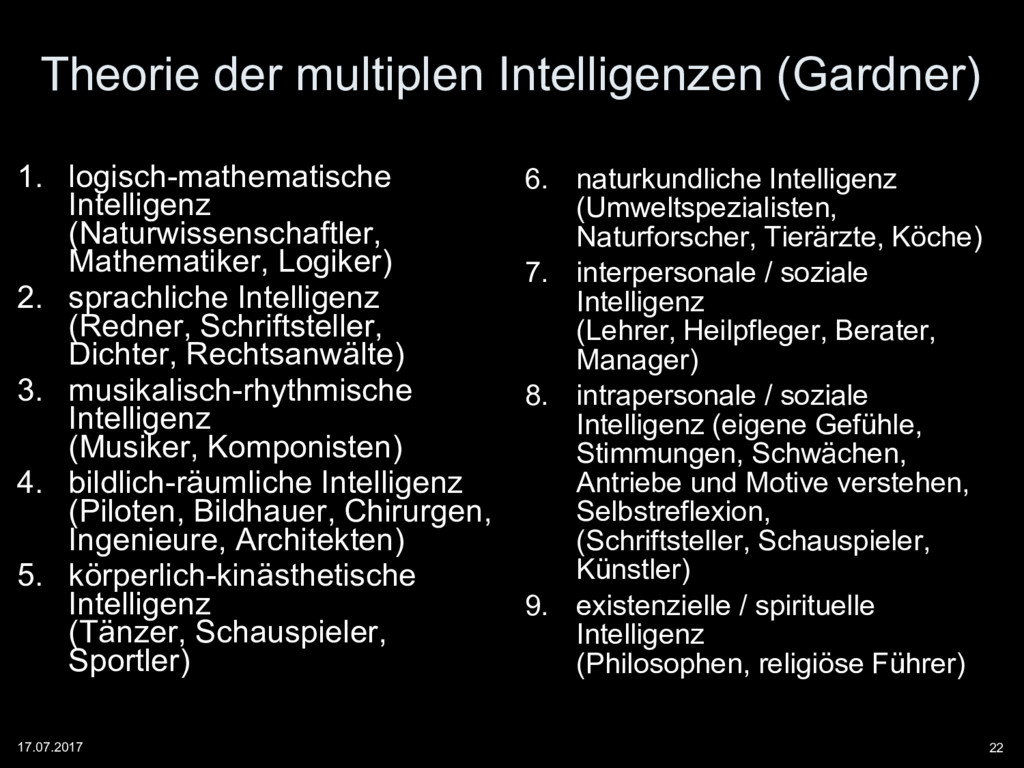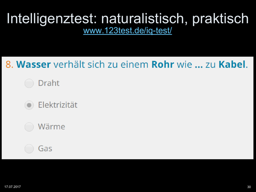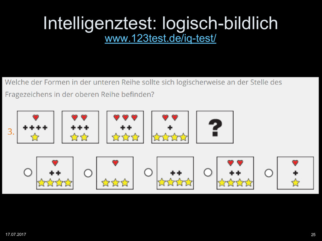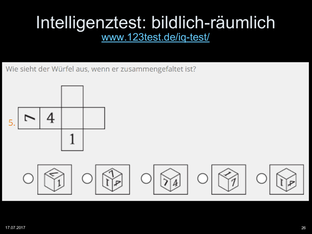ermittelte Kenngrösse zur Bewertung des intellektuellen Leistungsvermögens im Allgemeinen (allgemeine Intelligenz) oder innerhalb eines bestimmten Bereichs (z. B. Faktoren der Intelligenz) im Vergleich zu einer Referenzgruppe. 17.07.2017 19
