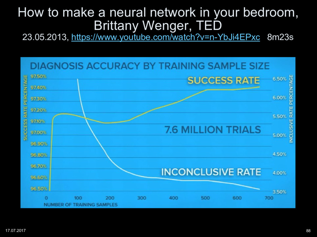 Project Magenta: Make music and art using machine learning – magenta.tensorflow.org – aiexperiments.withgoogle.com/ai-duet/view/ – www.midi.org/articles/midi-and-music-ai • Sony Flow machines creates music in the style of the Beatles www.flow- machines.com/ai-makes-pop-music/ • Amper artifical intelligence composer www.ampermusic.com • Lernen von MIDI-Files: Experiments in Musical Intelligence (Emmy) program – David Cope, Professor Emeritus of Music, University of California at Santa Cruz • Vivaldi youtube.com/watch?v=CgG1HipAayU • Chopin youtube.com/watch?v=t6WeiyvAiYQ • Bach youtube.com/watch?v=PczDLl92vlc youtube.com/watch?v=S9ghzMgjxbs – Mix of Jazz compositions youtube.com/watch?v=GuV3_C7HW3k&list=RDGuV3_C7HW3k#t=4 17.07.2017 87 www.youtube.com/watch?v=1rdE_0mHjjQ 4m57s