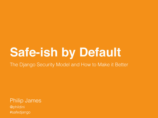 #safedjango @phildini Safe-ish by Default The Django Security Model and