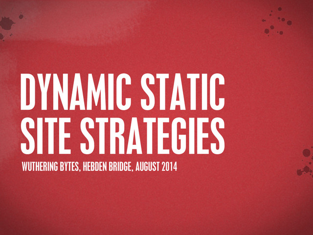 In this talk we'll explore some unexpected capabilities and characteristics of "static" sites. We'll look at ways to use emerging tools and services to create robust, high performance websites which can be more dynamic than some of their heavier and more costly brothers and sisters.