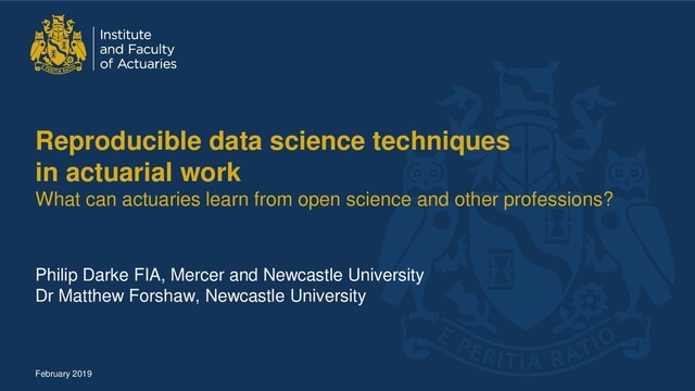 learn from open science and other professions? Philip Darke FIA, Mercer and Newcastle University Dr Matthew Forshaw, Newcastle University February 2019