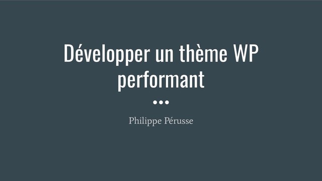 Plusieurs façon d’améliorer les performances de votre thème. Orienté pour les développeurs et administrateurs, on parlera des bonnes pratiques, des mauvaises et de différents trucs ou plugins qui peuvent nous aider.