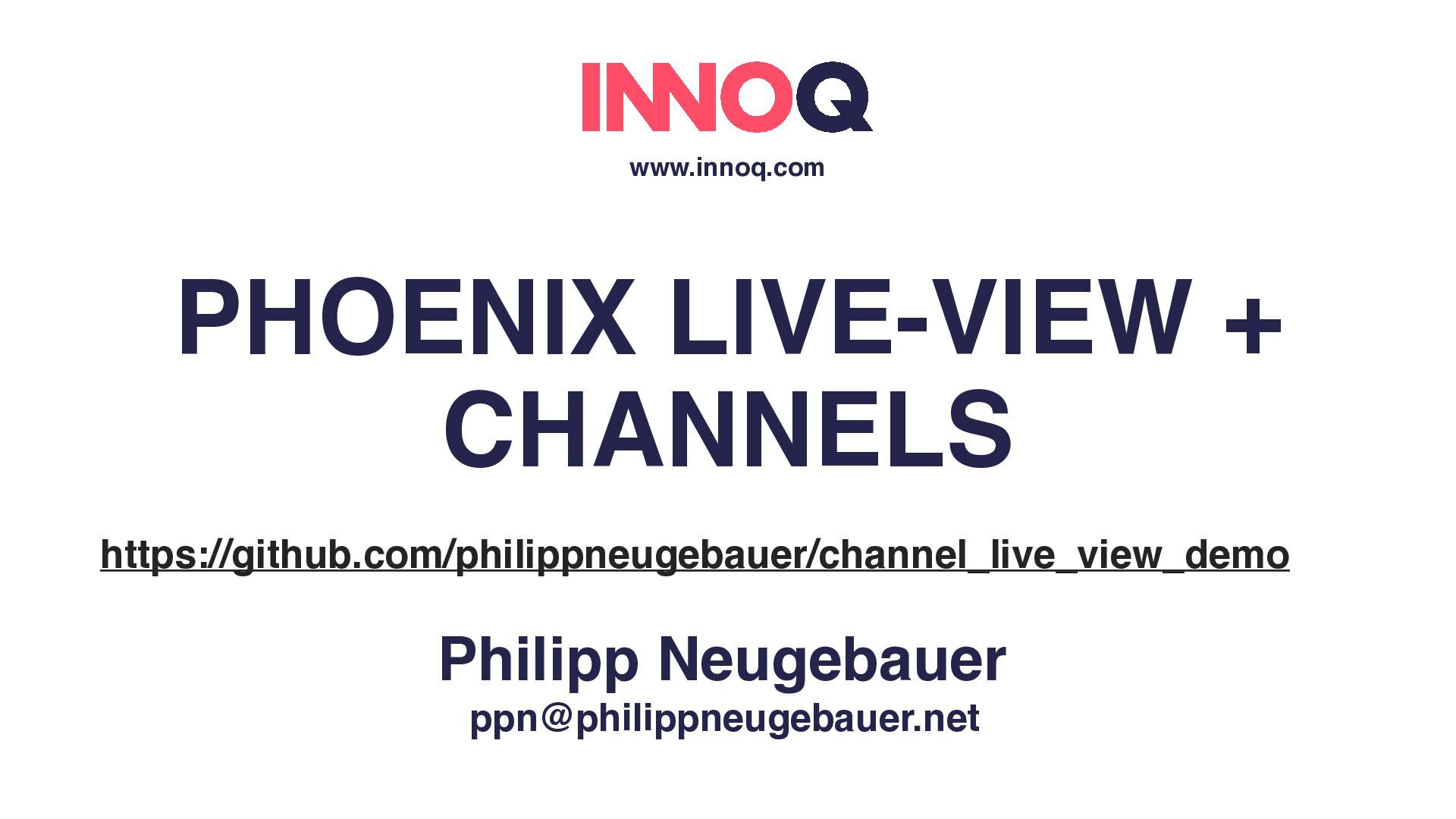 PHOENIX LIVE-VIEW + CHANNELS 01.10.2018 ELIXIR MEETUP MÜNCHEN Philipp Neugebauer