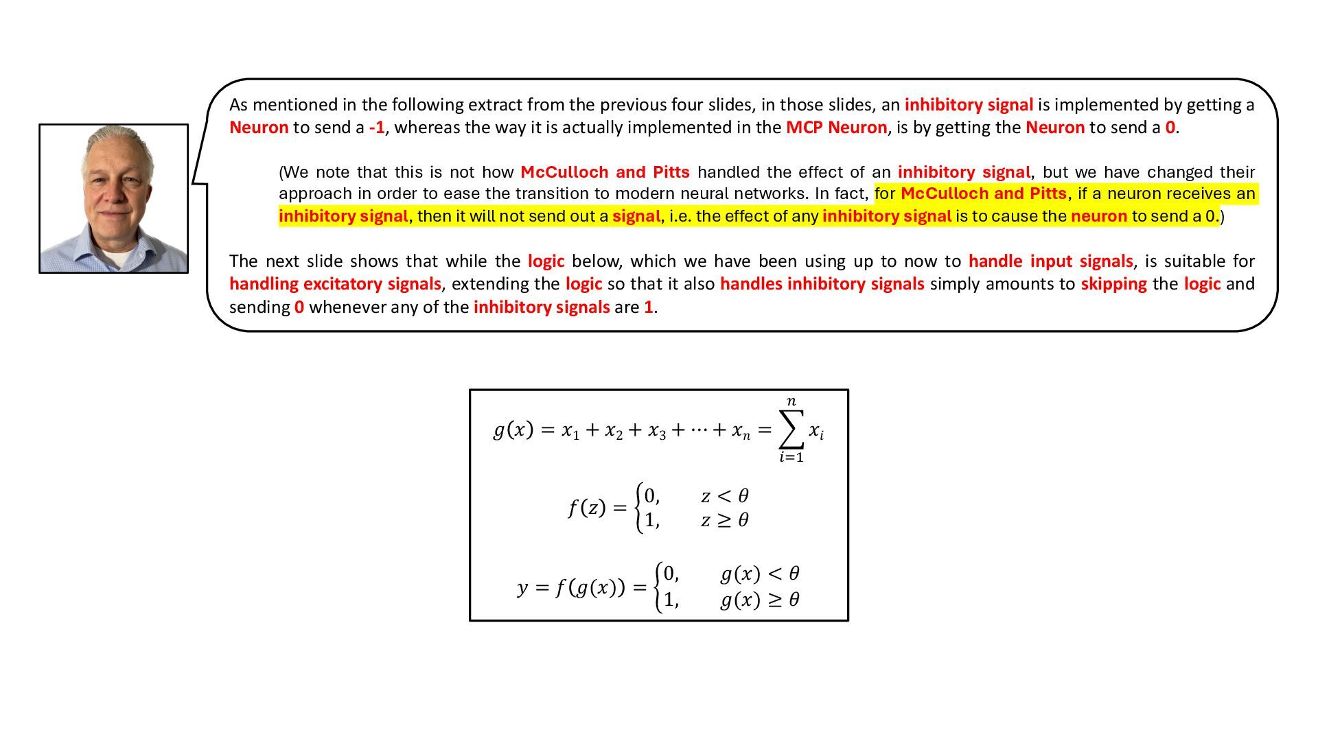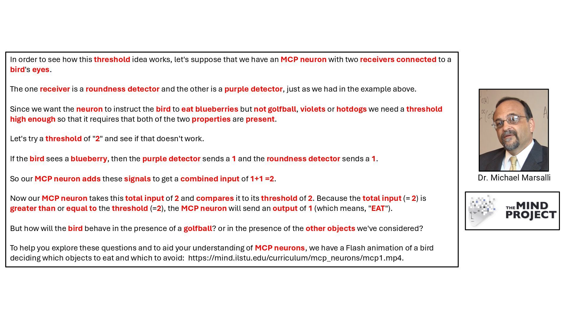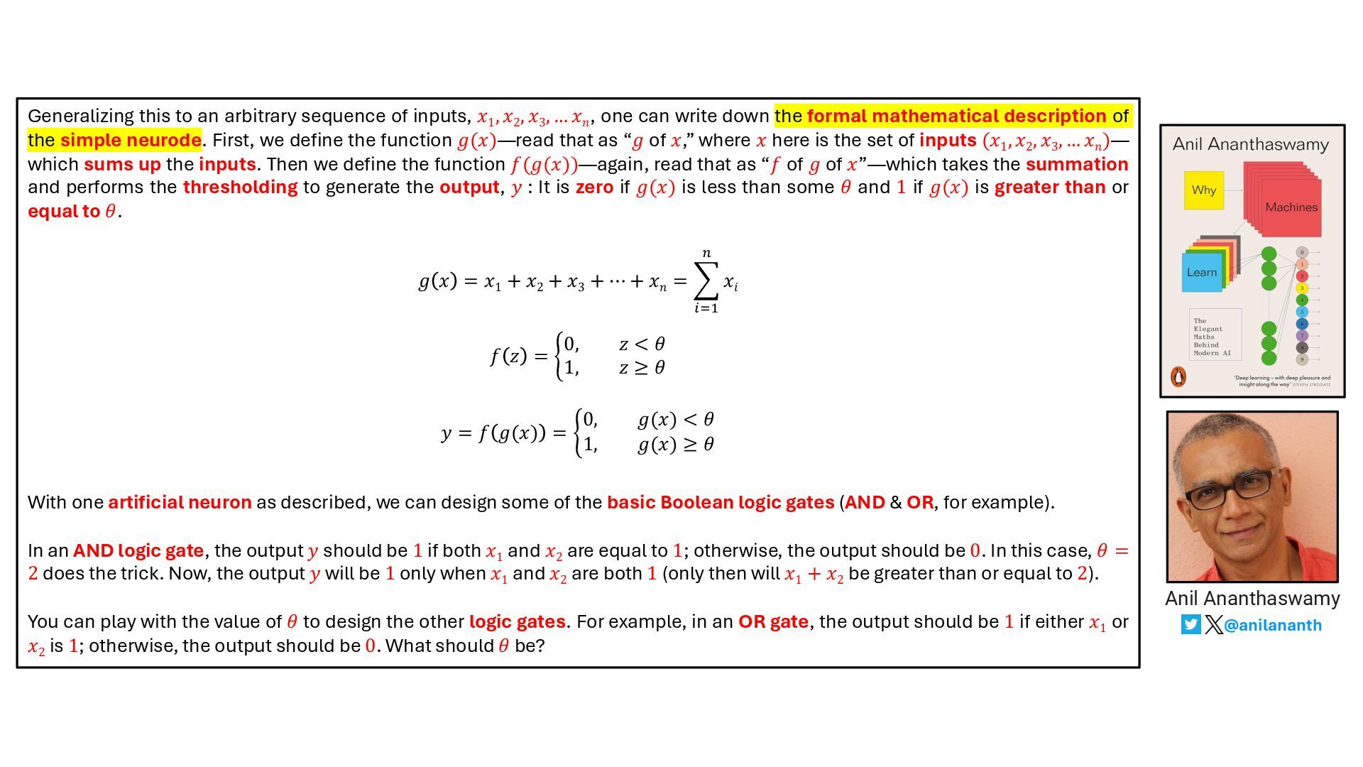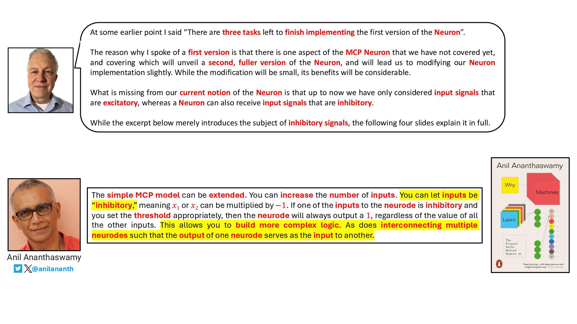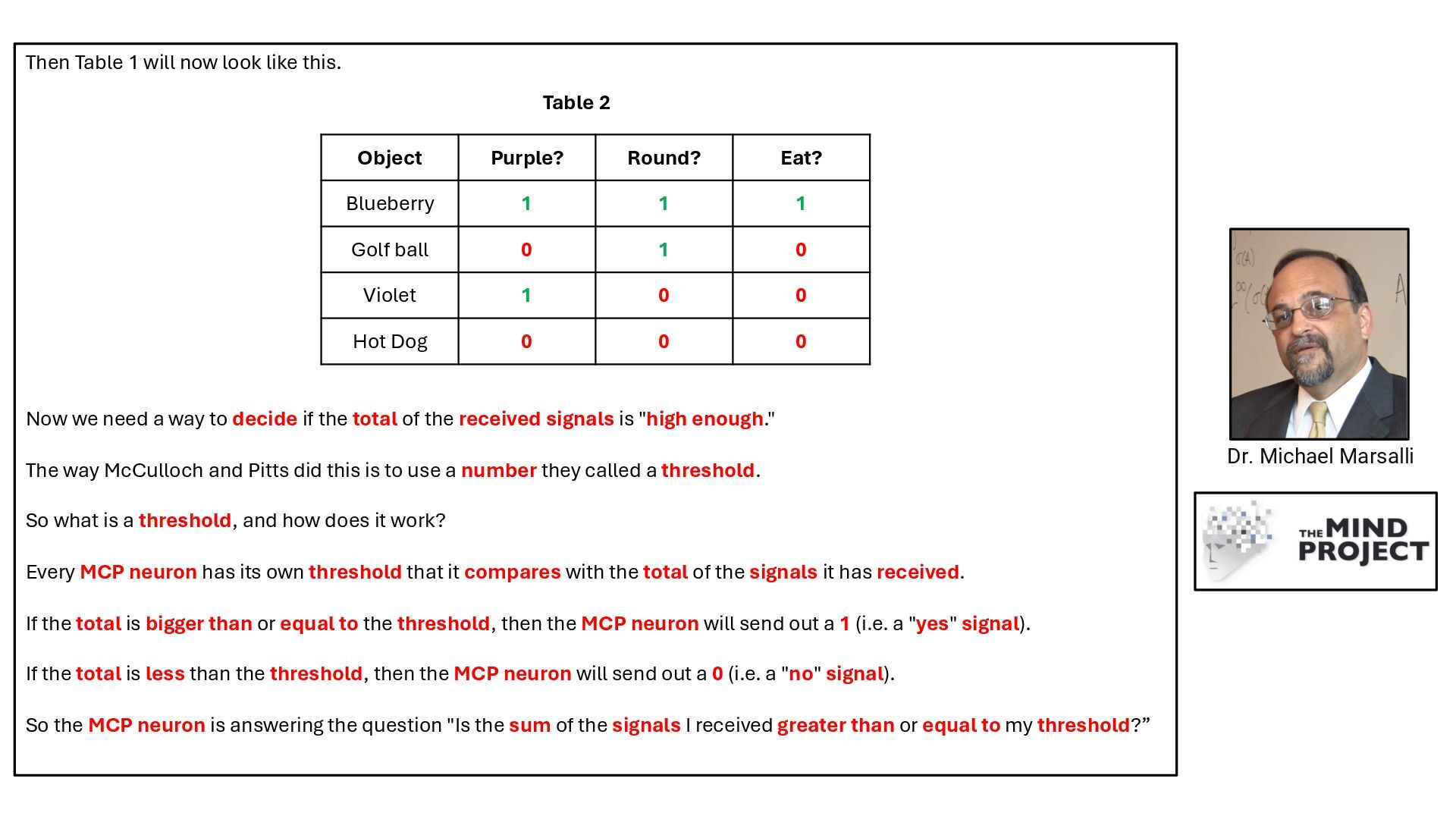 val output: List[Bit] = process(inputs) private def process(inputs: List[List[Bit]]): List[Bit] = inputs.transpose.map { xs => f(g(xs)) } private def g(xs: List[Bit]): Int = xs.sum private def f(z: Int): Bit = if z < ฮธ then 0 else 1 The process functionโs first step is to take the Neuronโs inputs, i.e. a list of ๐ SignalSource outputs with the ๐๐กโ output being List(๐ฅ๐1 , ๐ฅ๐2 , โฆ , ๐ฅ๐๐ ), and transpose it into a list of ๐ parameter lists with the ๐๐กโ parameter list being List(๐ฅ1๐ , ๐ฅ2๐ , โฆ , ๐ฅ๐๐ ). The process functionโs second step is to map each parameter list List(๐ฅ1๐ , ๐ฅ2๐ , โฆ , ๐ฅ๐๐ ), referred to as ๐ฅ, to ๐ ๐(๐ฅ) , referred to as ๐ฆ๐ , thereby producing output List(๐ฆ1 , ๐ฆ2 , โฆ , ๐ฆ๐ ). ๐ ๐ฅ = ๐ฅ1 + ๐ฅ2 + ๐ฅ3 + โฏ + ๐ฅ๐ = & )*+ , ๐ฅ๐ ๐ ๐ง = ) 0, ๐ง < ๐ 1, ๐ง โฅ ๐ ๐ฆ = ๐ ๐(๐ฅ) = ) 0, ๐(๐ฅ) < ๐ 1, ๐(๐ฅ) โฅ ๐ List(List ๐ฅ11 , ๐ฅ12 , โฆ , ๐ฅ1๐ , List ๐ฅ21 , ๐ฅ22 , โฆ , ๐ฅ2๐ , โฆ , List ๐ฅ๐1 , ๐ฅ๐2 , โฆ , ๐ฅ๐๐ ) โ ๐ ๐ก๐๐ 1 โ ๐ก๐๐๐๐ ๐๐๐ ๐ List(List ๐ฅ11 , ๐ฅ21 , โฆ , ๐ฅ๐1 , List ๐ฅ12 , ๐ฅ22 , โฆ , ๐ฅ๐2 โฆ , List ๐ฅ1๐ , ๐ฅ2๐ , โฆ , ๐ฅ๐๐ )) โ ๐ ๐ก๐๐2 โ ๐๐๐ ๐ ๐๐ 1. . ๐: ๐ฅ = ๐ฅ1๐ , ๐ฅ2๐ , โฆ , ๐ฅ๐๐ ; ๐ฆ๐ = ๐ ๐ ๐ฅ List(y1 , y2 , โฆ , ym )
