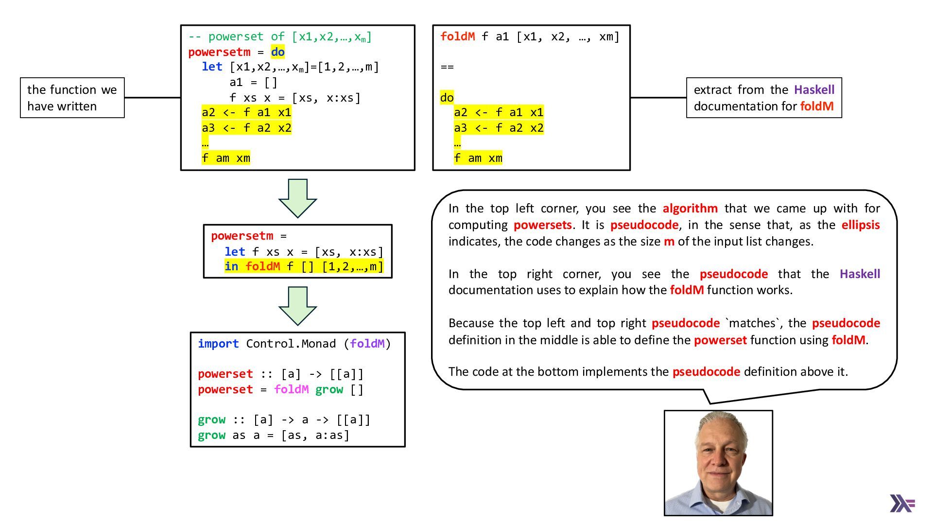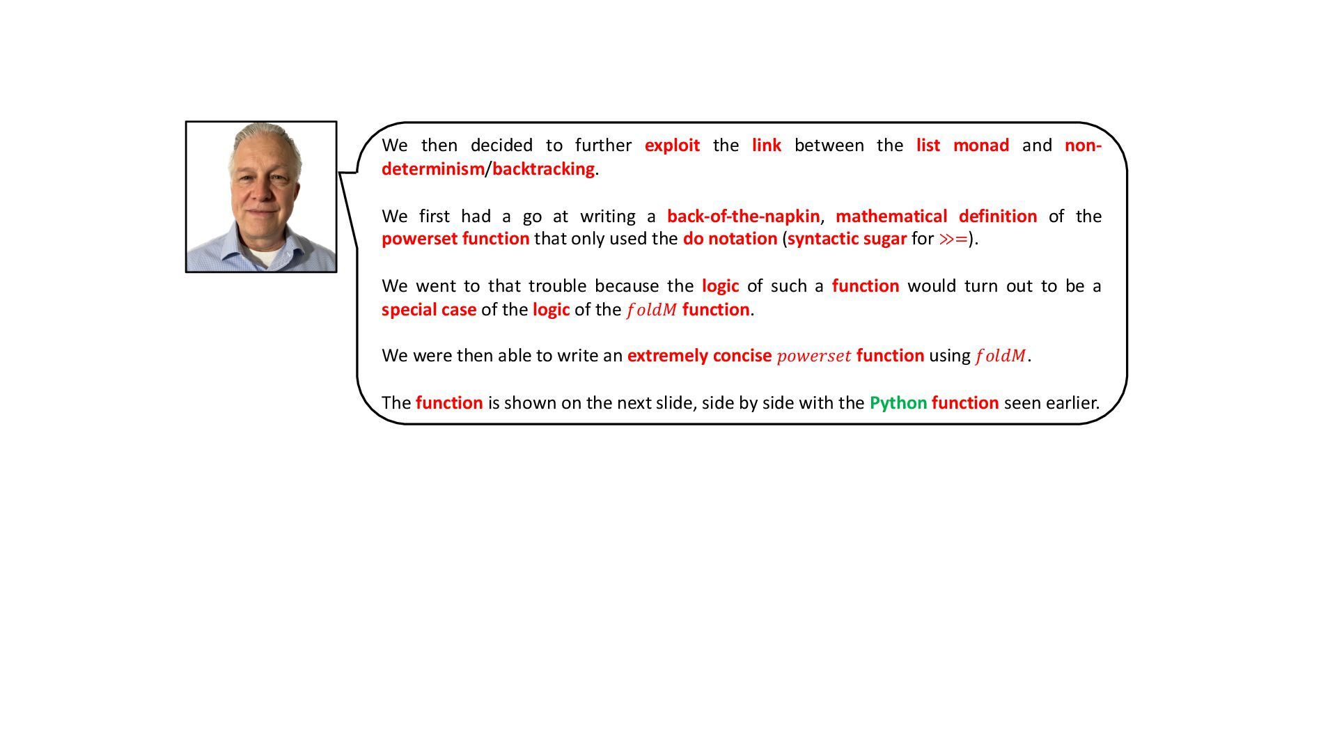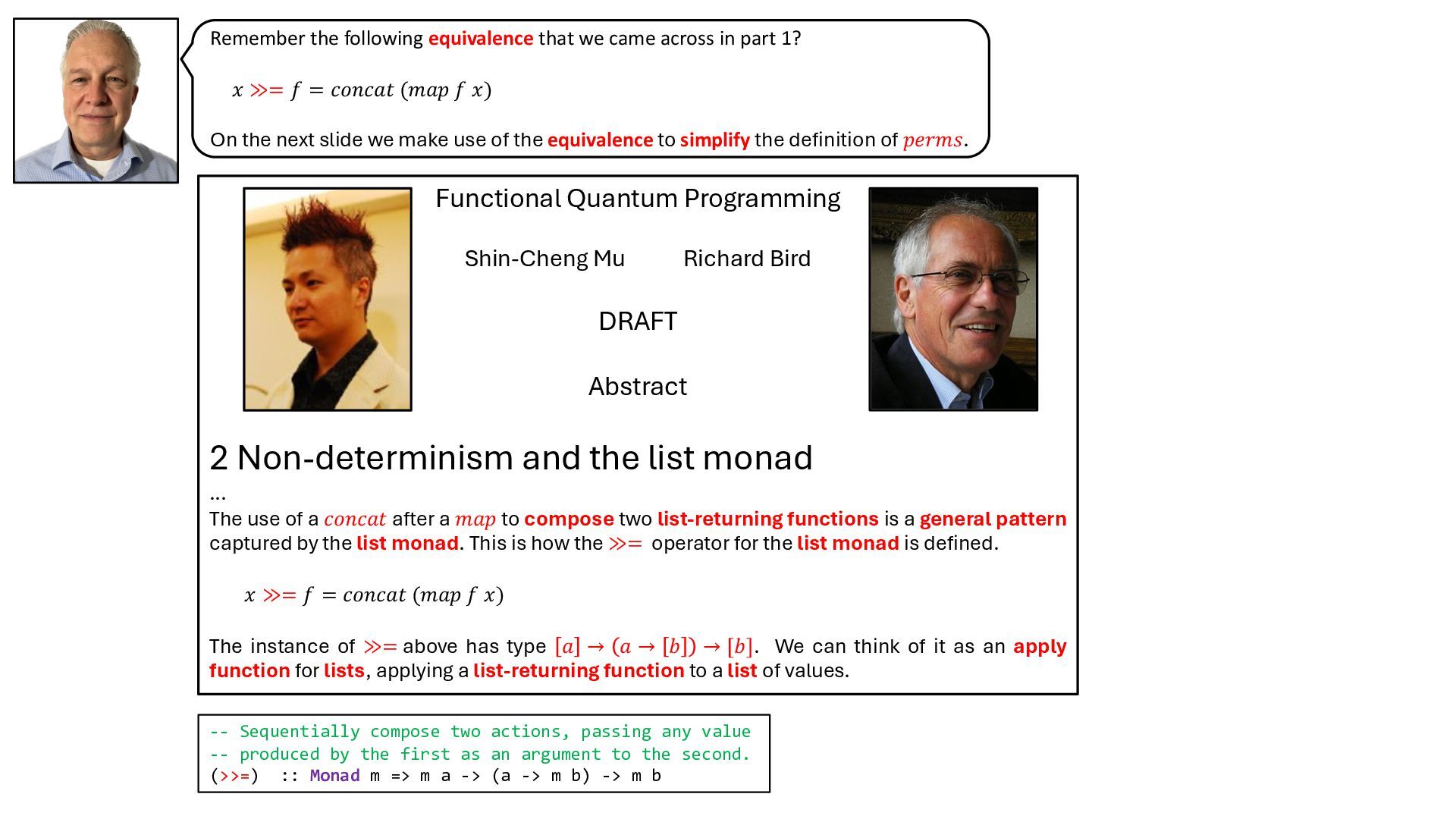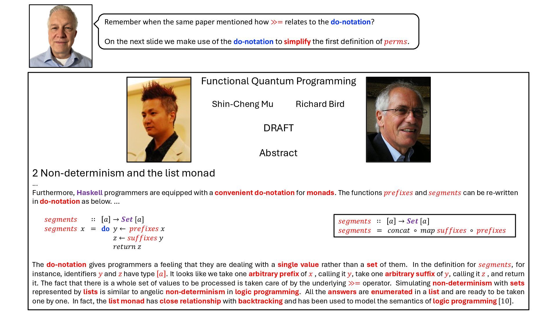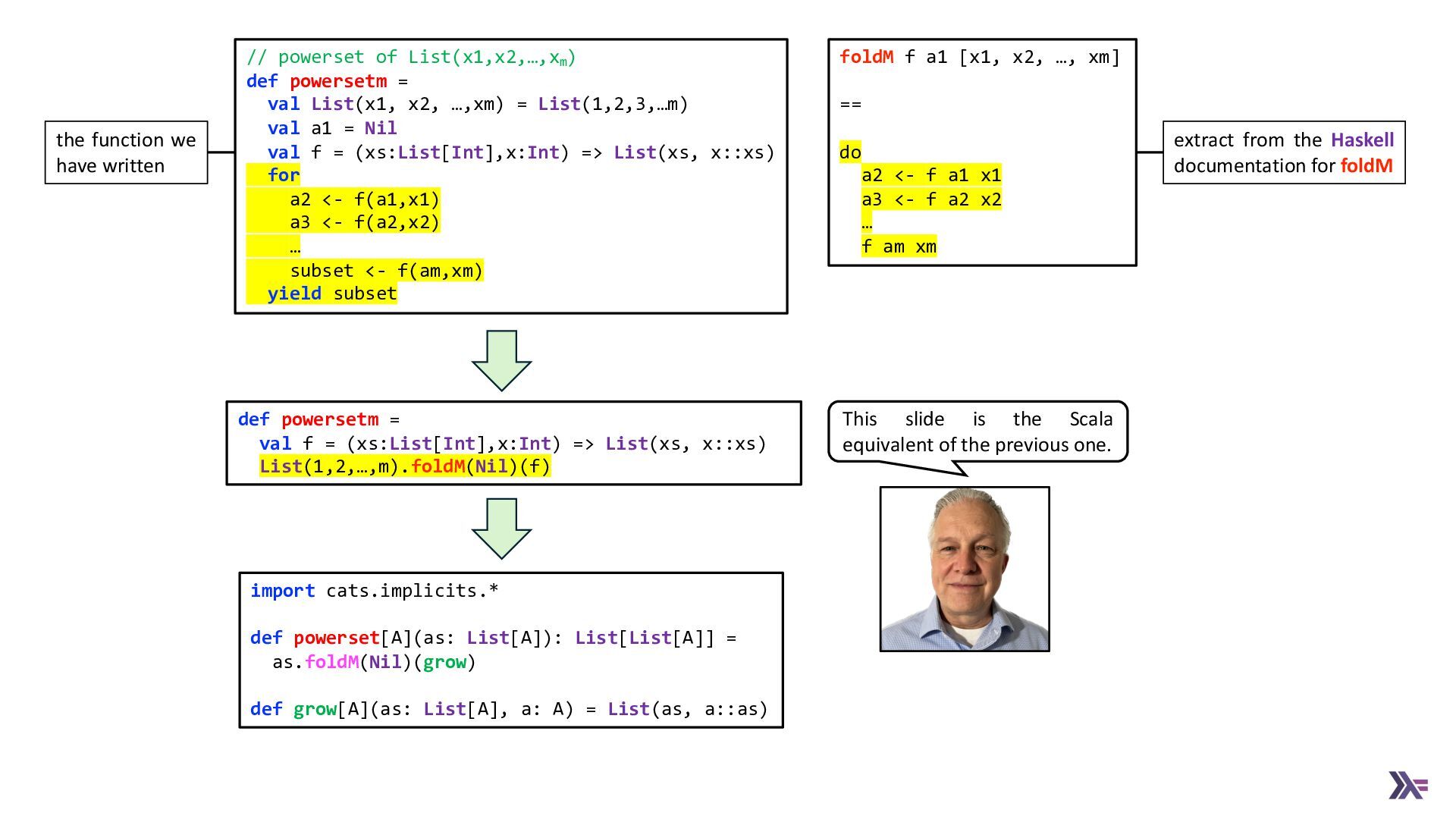 elements, method backtrack faces 1 + (∑ !"# $%# ∏ &"!'# $ 𝑗) decision points, at each of which it repeatedly chooses a number that has not yet been used in the permutation currently being generated. Choosing a number is followed by a recursive call. The total number of calls is 1 + (∑!"# $ ∏&"! $ 𝑗). def find_all_permutations(nums: List[Int]) -> List[List[Int]]: res = [] backtrack(nums, [], set(), res) return res def backtrack( nums: List[Int], candidate: List[Int], used: Set[Int], res: List[List[Int]] ) -> None: # If the current candidate is a complete # permutation, add it to the result. if len(candidate) == len(nums): res.append(candidate[:]) return for num in nums: if num not in used: # Add 'num' to the current permutation and mark it as used. candidate.append(num) used.add(num) # Recursively explore all branches using # the updated permutation candidate. backtrack(nums, candidate, used, res) # Backtrack by reversing the changes made. candidate.pop() used.remove(num) @alexxubyte Alex Xu @shaungunaw Shaun Gunawardane numbers to generate permutations with permutation grown so far numbers used up so far permutations generated so far This program is side-effecting, in that it adds/removes numbers to/from two mutable lists and a mutable set. The diagram below illustrates the computation of the permutations of a three-element list. E.g for a list with three elements: • permutations = 3! = 3 x 2 x 1 = 6 • decision pts = 1 + ∑!"# (%# ∏&"!'# ( 𝑗 = 10 • calls = 1 + ∑!"# ( ∏&"! ( 𝑗 = 16 [] [4] [6] [4,5] [4,6] [4,5,6][4,6,5] choose 4 choose 6 choose 5 choose 6 choose 6 choose 5 [5] [5,4] [5,6] [5,4,6][5,6,4] choose 4 choose 6 choose 6 choose 4 [6,4] [6,5] [6,4,5][6,5,4] choose 4 choose 5 choose 5 choose 4 choose 5 nums candidate used [4,5,6] [] {} [4,5,6] [4] {4} [4,5,6] [4,5] {4,5} [4,5,6] [4,5,6] {4,5,6} [4,5,6] [4,6] {4,6} [4,5,6] [4,6,5] {4,6,5} [4,5,6] [5] {5} … … … for num in [4,5,6]: if num not in {} for num in [4,5,6]: if num not in {4} for num in [4,5,6]: if num not in {4,5}