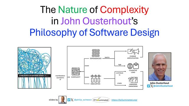 system is easy to John Ousterhout If a software system is hard to understand and modify, then it is complicated; if it is easy to understand and modify then it is simple. UNDERSTAND MODIFY