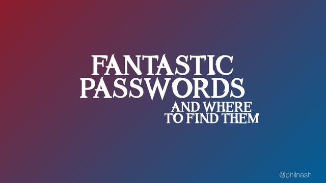Let's take a look at how we currently protect passwords, at what we can throw away from those processes and what we can bring in to strengthen our users' passwords. Together we can move the world from "password1" to "correct horse battery staple" and beyond!