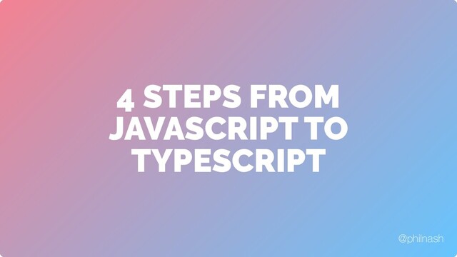 Over this talk we'll take an existing JavaScript project and move it to TypeScript, noting the new benefits we get at each step of the transition. By the end you'll have a blueprint for moving your project to TypeScript and be confident that you can go as far as you and your team needs to.