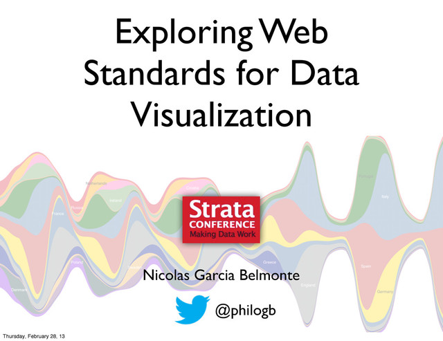 by asking yourself about... # of Elements Shape Complexity Interaction Animation Compatibility Libraries Small, Large Simple, Complex Yes, No Yes, No Desktop, Mobile, Browsers, etc. d3js, three.js, etc. Thursday, February 28, 13